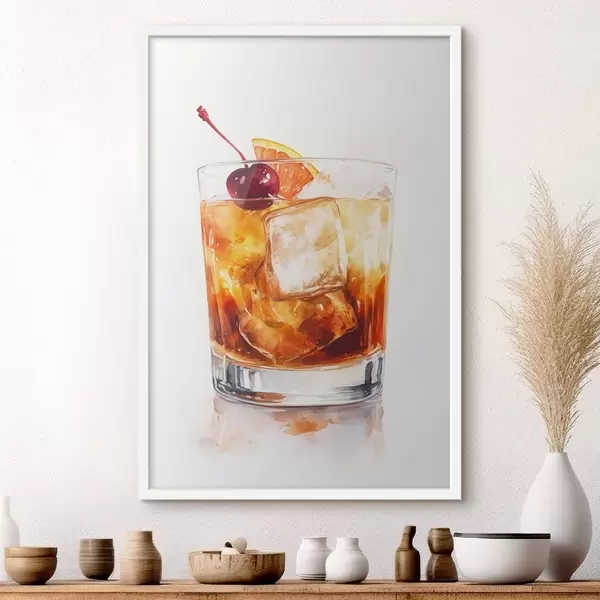 Plakatas Apelsinų kokteilis su ledu ir vyšniomis, akvarelės stilius Ne f44303