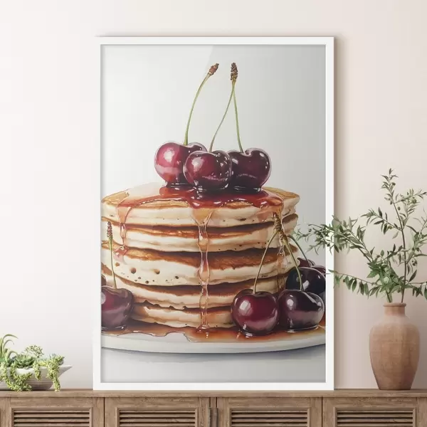 Plakatas Skanūs blyneliai su vyšniomis ir sirupu, akvarelės stilius f44305