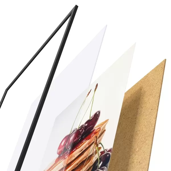 Plakatą sudaro rėmas, pleksiklas, atspausdintas vaizdas ir medžio drožlių plokštės pagrindas. Plakatą galima iš karto pakabinti ant sienos dėl kitoje pusėje esančių laikiklių.