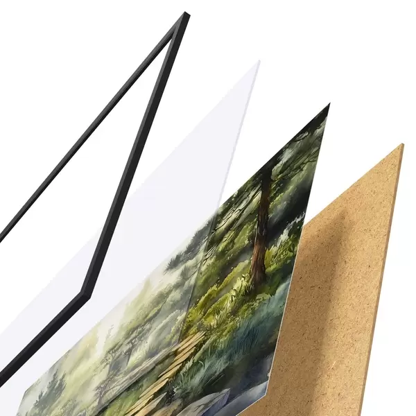 Plakatą sudaro rėmas, pleksiklas, atspausdintas vaizdas ir medžio drožlių plokštės pagrindas. Plakatą galima iš karto pakabinti ant sienos dėl kitoje pusėje esančių laikiklių.