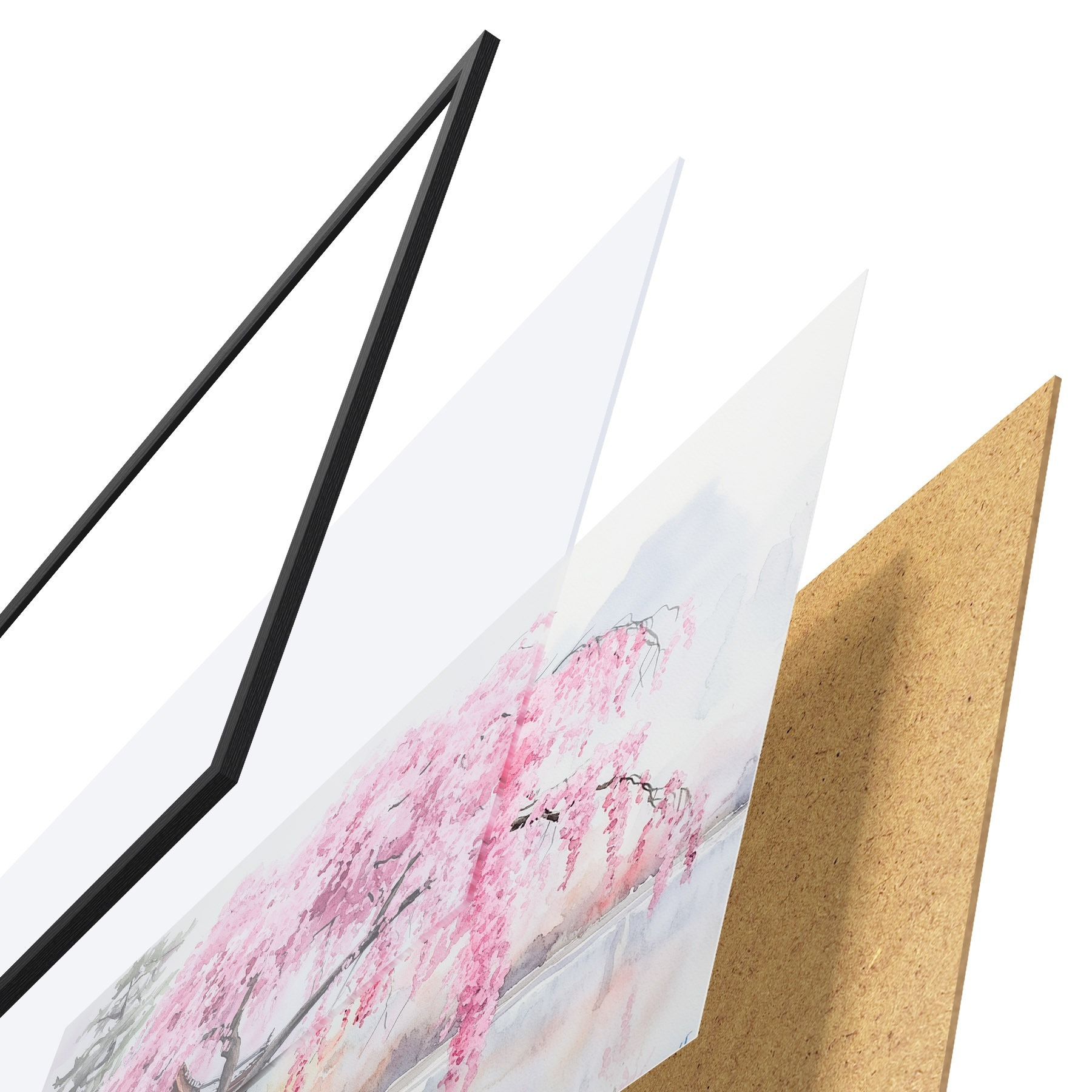 Plakatą sudaro rėmas, pleksiklas, atspausdintas vaizdas ir medžio drožlių plokštės pagrindas. Plakatą galima iš karto pakabinti ant sienos dėl kitoje pusėje esančių laikiklių.