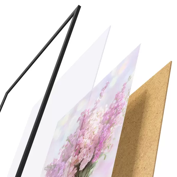 Plakatą sudaro rėmas, pleksiklas, atspausdintas vaizdas ir medžio drožlių plokštės pagrindas. Plakatą galima iš karto pakabinti ant sienos dėl kitoje pusėje esančių laikiklių.