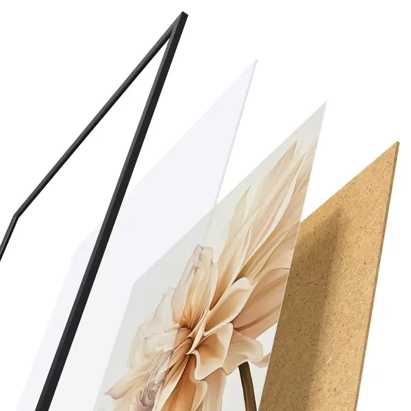Plakatą sudaro rėmas, pleksiklas, atspausdintas vaizdas ir medžio drožlių plokštės pagrindas. Plakatą galima iš karto pakabinti ant sienos dėl kitoje pusėje esančių laikiklių.