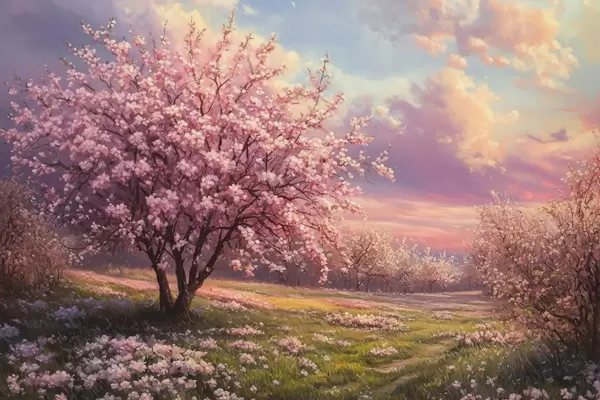 Plakatas Žydintys rožiniai medžiai Ne f44324