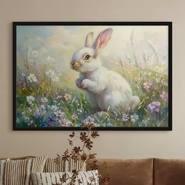Plakatas Baltas zuikutis tarp gėlių f44326