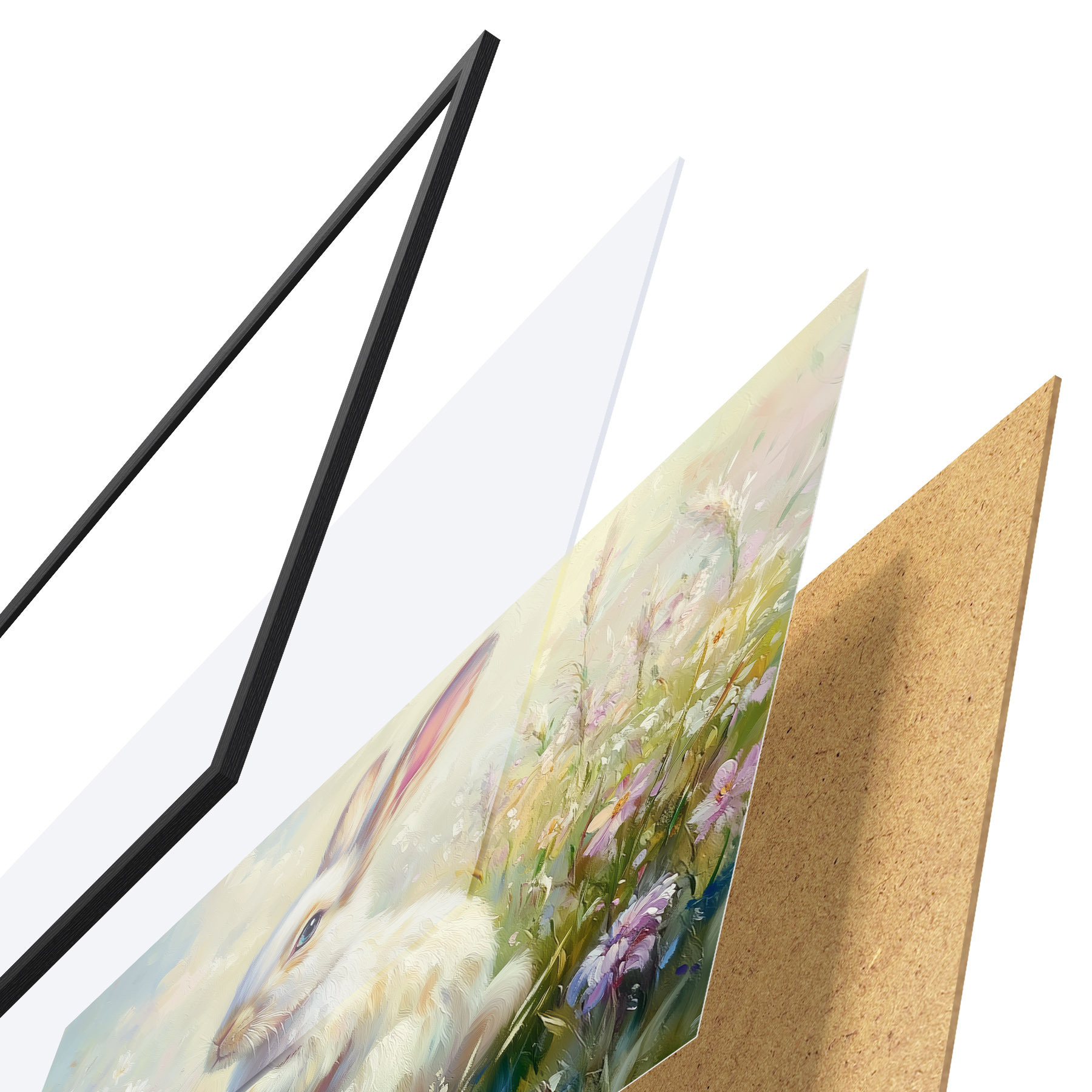 Plakatą sudaro rėmas, pleksiklas, atspausdintas vaizdas ir medžio drožlių plokštės pagrindas. Plakatą galima iš karto pakabinti ant sienos dėl kitoje pusėje esančių laikiklių.
