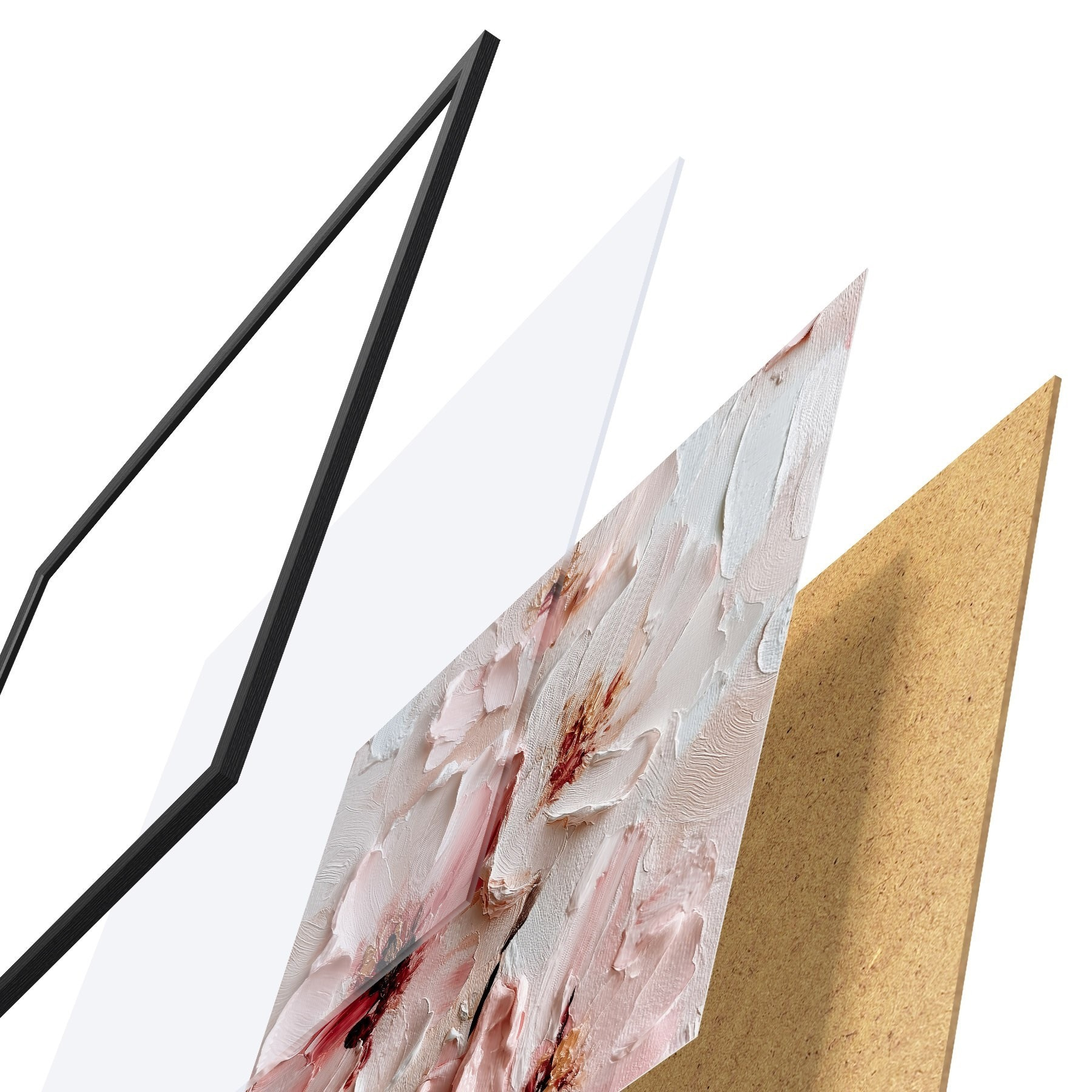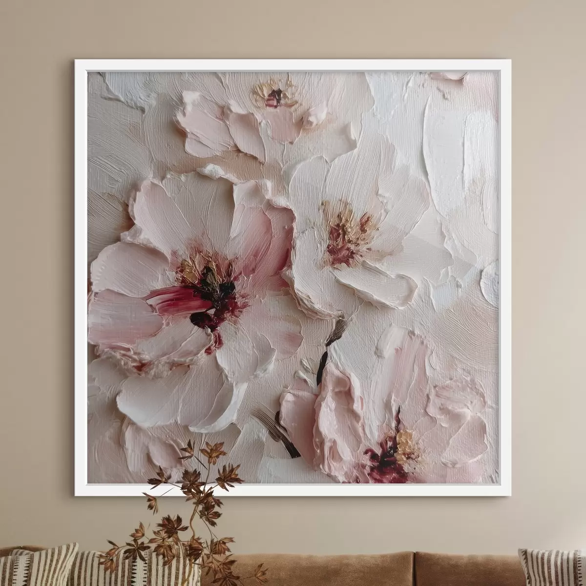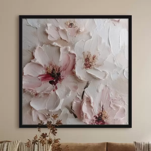 Plakatas Gėlės su impasto stiliaus imitacija rausvais ir baltais potėpiais f44333