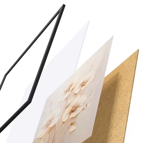 Plakatą sudaro rėmas, pleksiklas, atspausdintas vaizdas ir medžio drožlių plokštės pagrindas. Plakatą galima iš karto pakabinti ant sienos dėl kitoje pusėje esančių laikiklių.