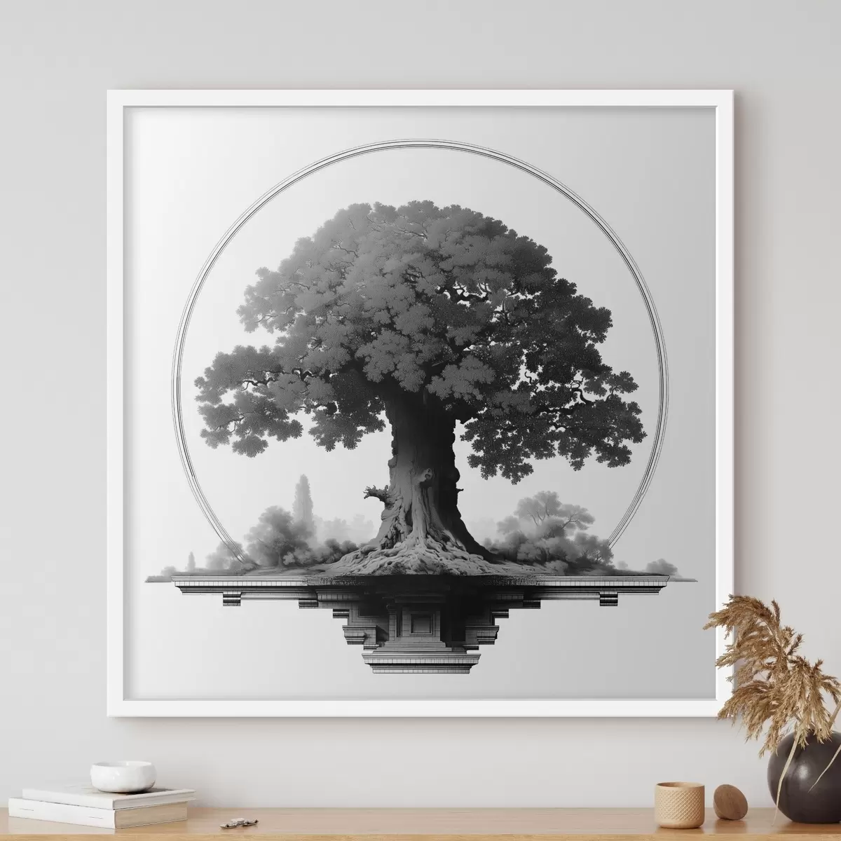 Plakatas Vienspalvis medis su galingu kamienu ir išsikerojusia laja Ne f44346
