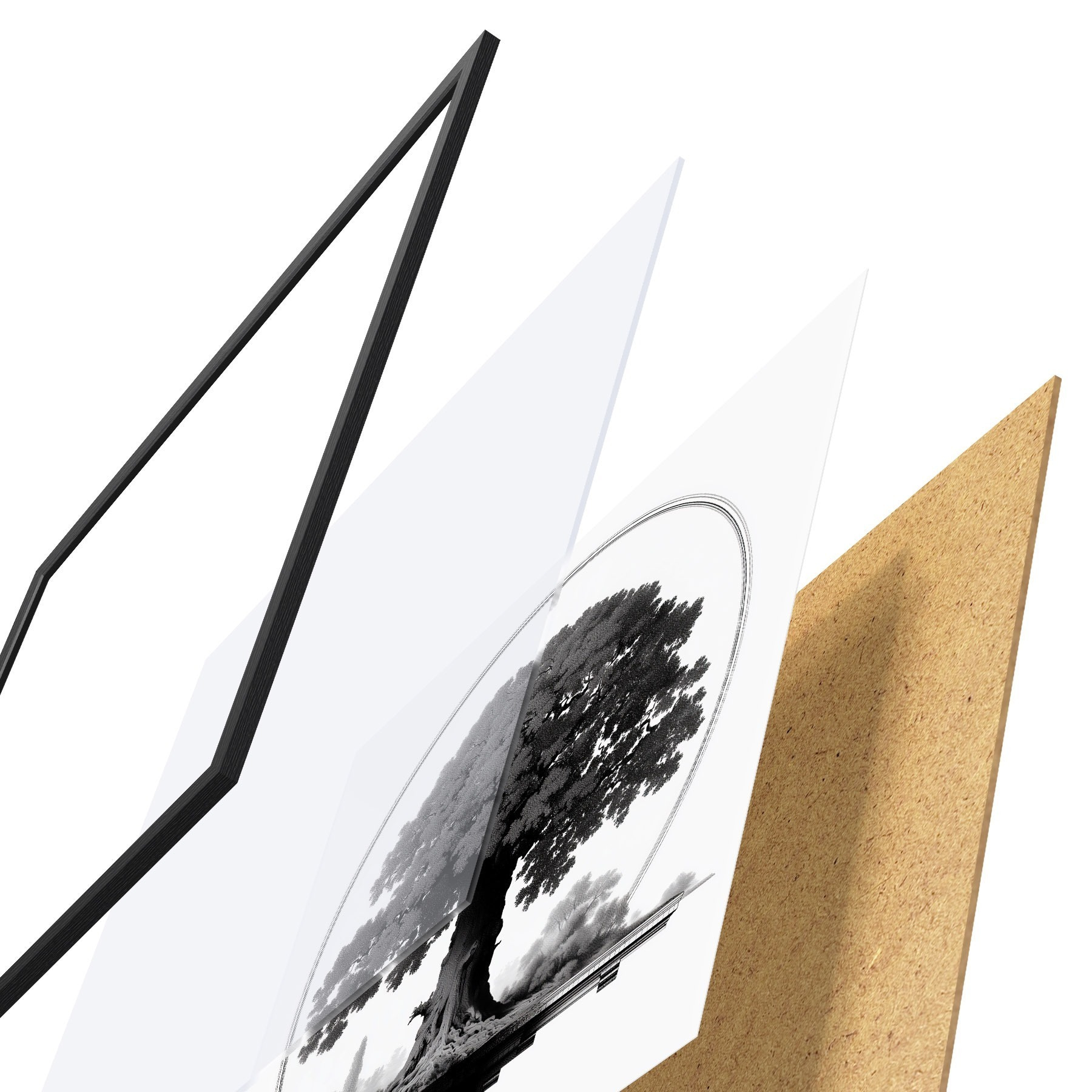 Plakatą sudaro rėmas, pleksiklas, atspausdintas vaizdas ir medžio drožlių plokštės pagrindas. Plakatą galima iš karto pakabinti ant sienos dėl kitoje pusėje esančių laikiklių.