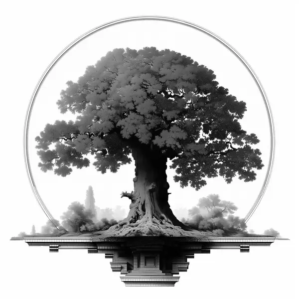 Plakatas Vienspalvis medis su galingu kamienu ir išsikerojusia laja Ne f44346
