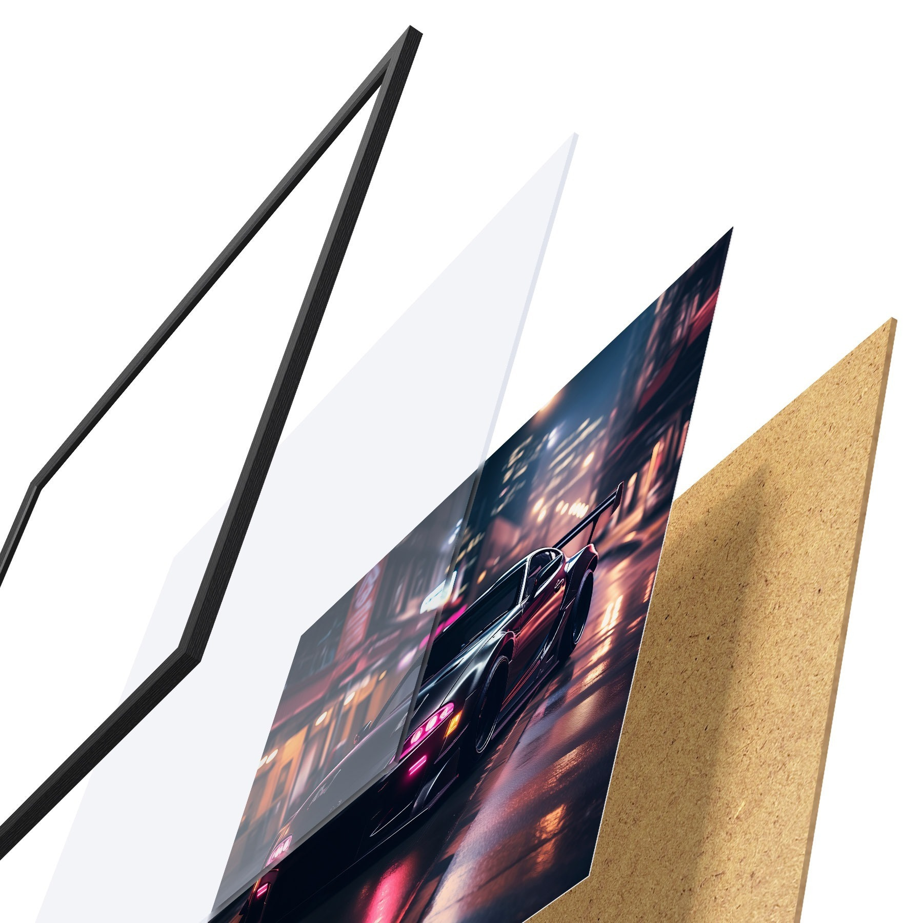 Plakatą sudaro rėmas, pleksiklas, atspausdintas vaizdas ir medžio drožlių plokštės pagrindas. Plakatą galima iš karto pakabinti ant sienos dėl kitoje pusėje esančių laikiklių.