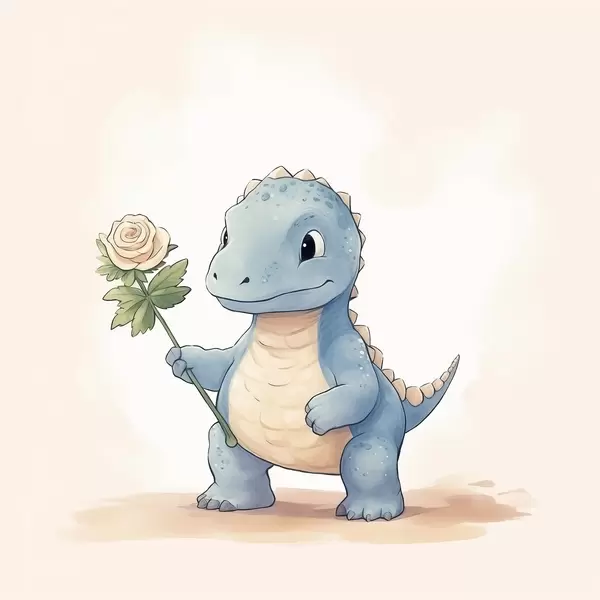 Plakatas Mažas dinozauras ir švelni gėlė f44351