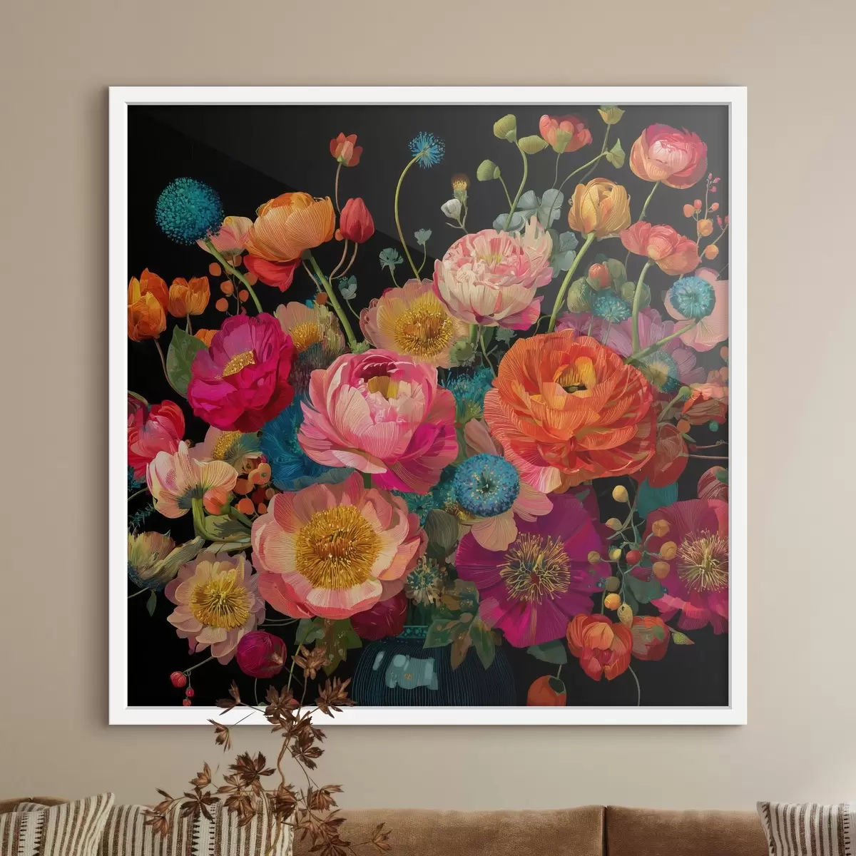 Plakatas Gėlių ekstravagancija juodame fone Ne f44352