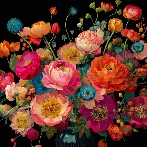 Plakatas Gėlių ekstravagancija juodame fone f44352