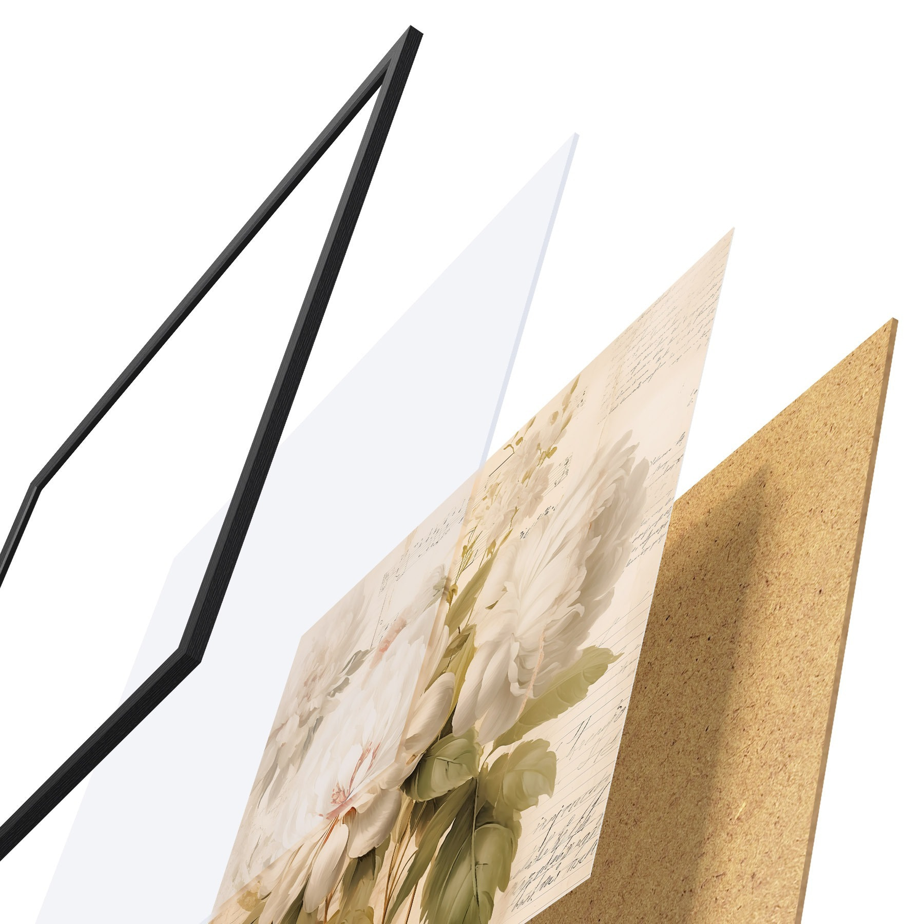 Plakatą sudaro rėmas, pleksiklas, atspausdintas vaizdas ir medžio drožlių plokštės pagrindas. Plakatą galima iš karto pakabinti ant sienos dėl kitoje pusėje esančių laikiklių.