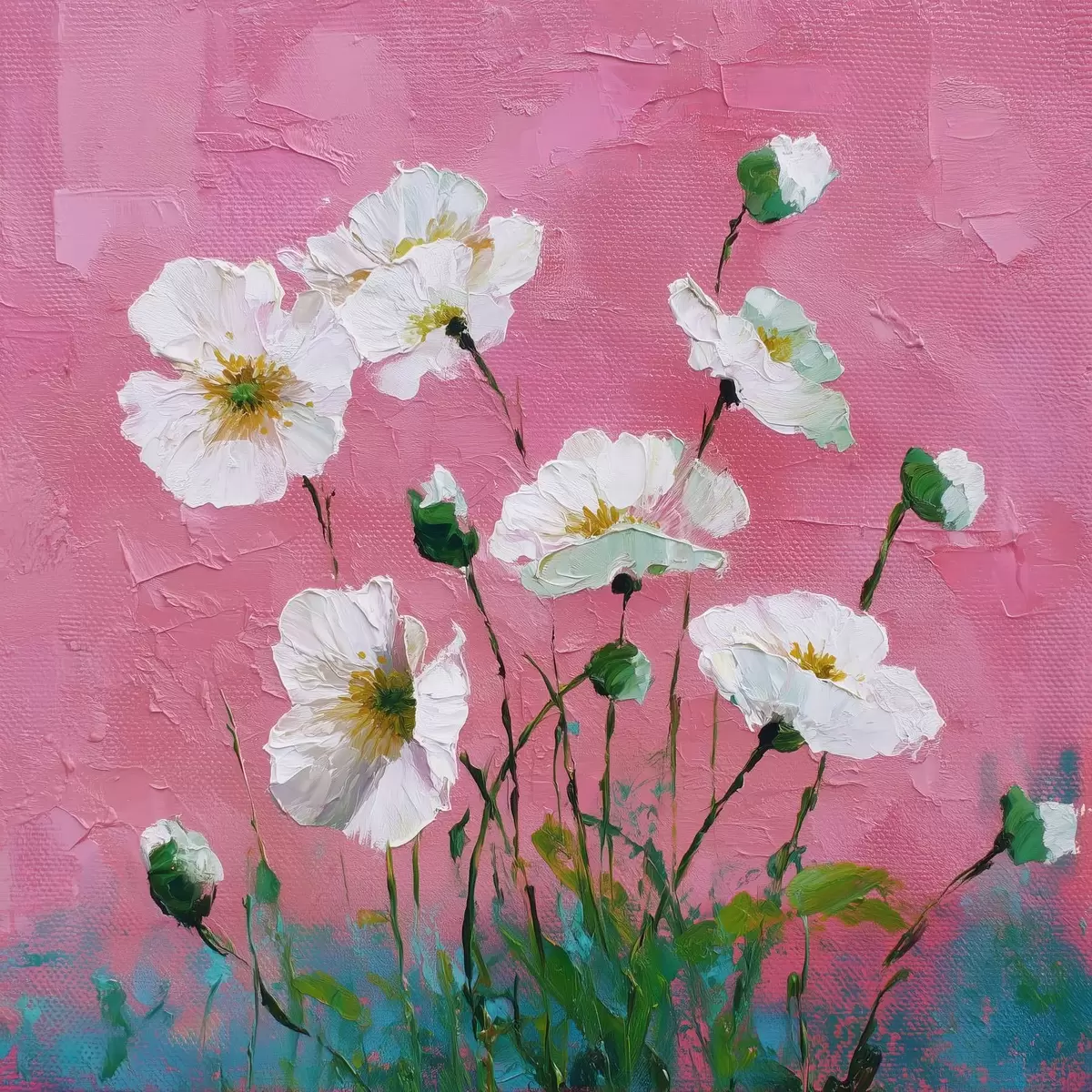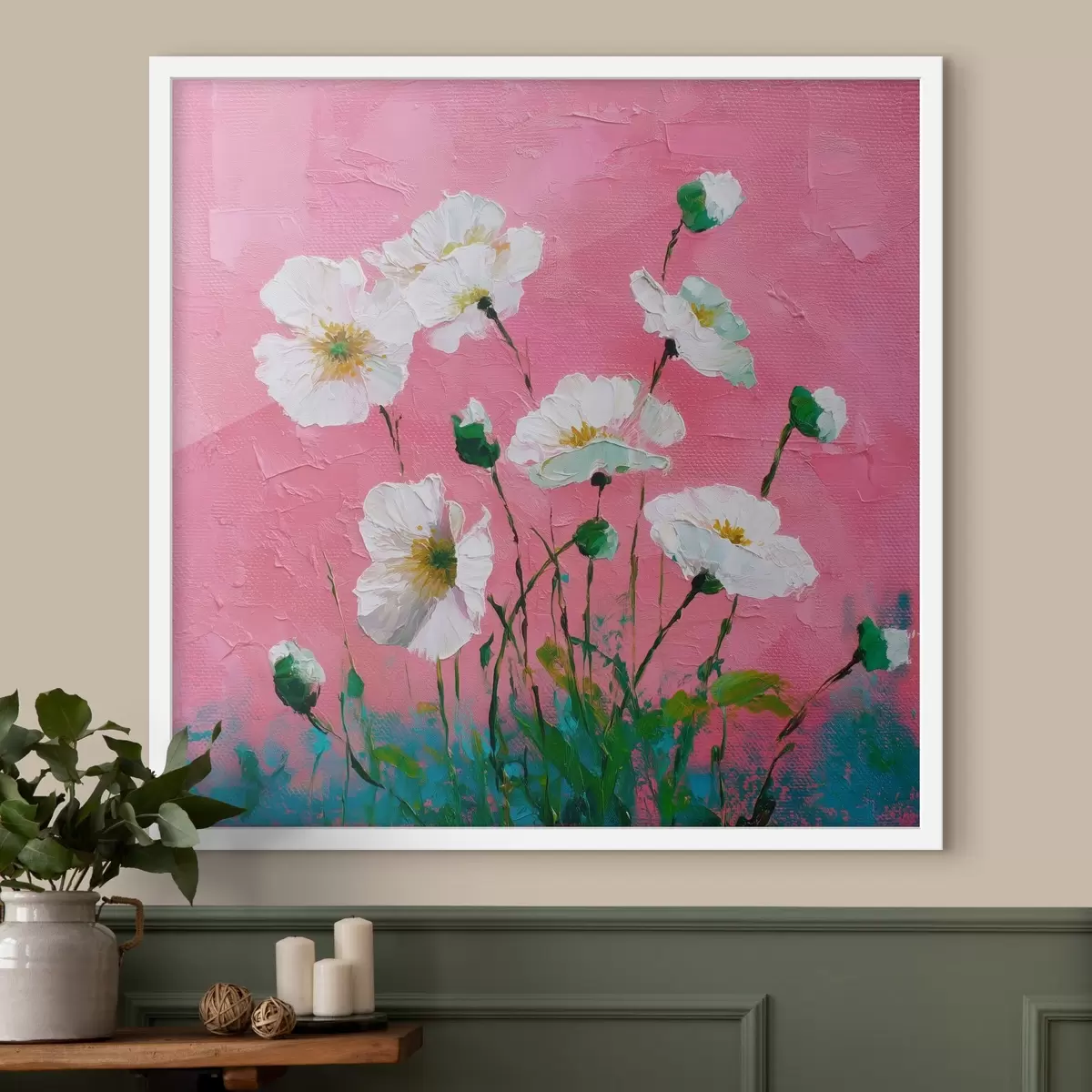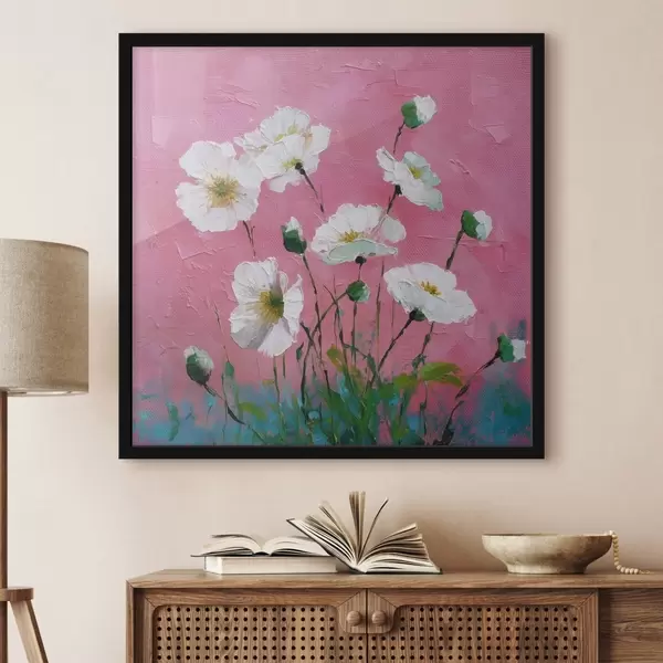 Plakatas Baltos gėlės rausvame fone Ne f44360