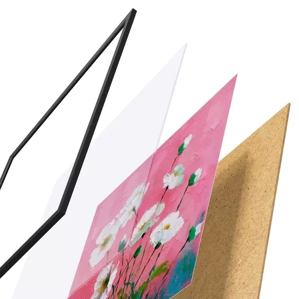 Plakatą sudaro rėmas, pleksiklas, atspausdintas vaizdas ir medžio drožlių plokštės pagrindas. Plakatą galima iš karto pakabinti ant sienos dėl kitoje pusėje esančių laikiklių.