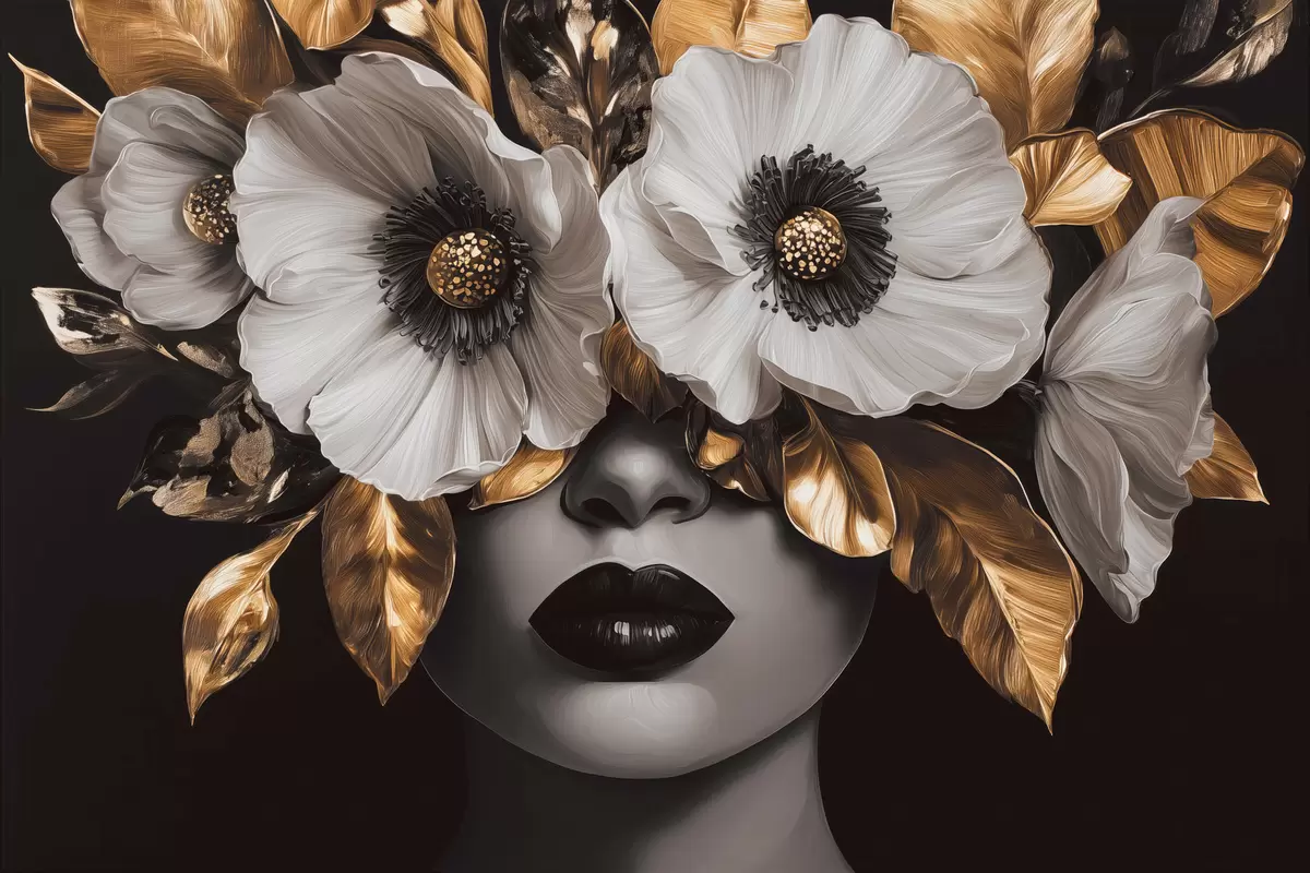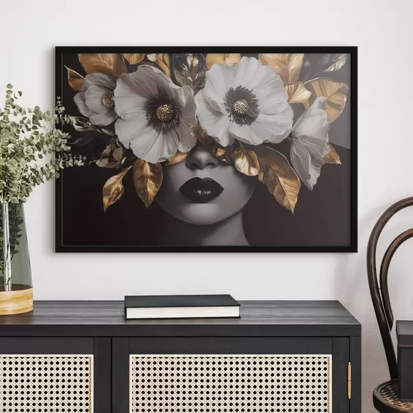 Plakatas Pusiau abstraktus moters su gėlėmis portretas f44365