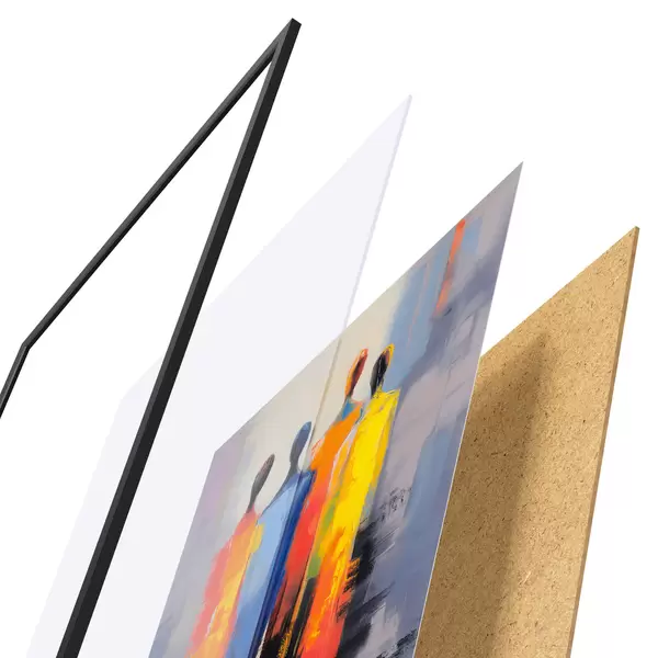 Plakatą sudaro rėmas, pleksiklas, atspausdintas vaizdas ir medžio drožlių plokštės pagrindas. Plakatą galima iš karto pakabinti ant sienos dėl kitoje pusėje esančių laikiklių.