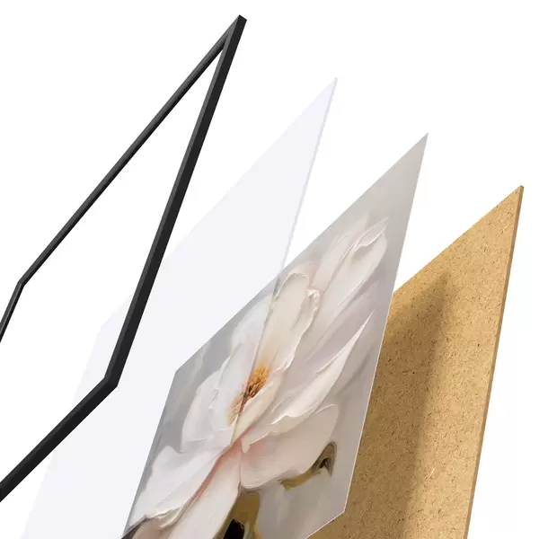 Plakatą sudaro rėmas, pleksiklas, atspausdintas vaizdas ir medžio drožlių plokštės pagrindas. Plakatą galima iš karto pakabinti ant sienos dėl kitoje pusėje esančių laikiklių.