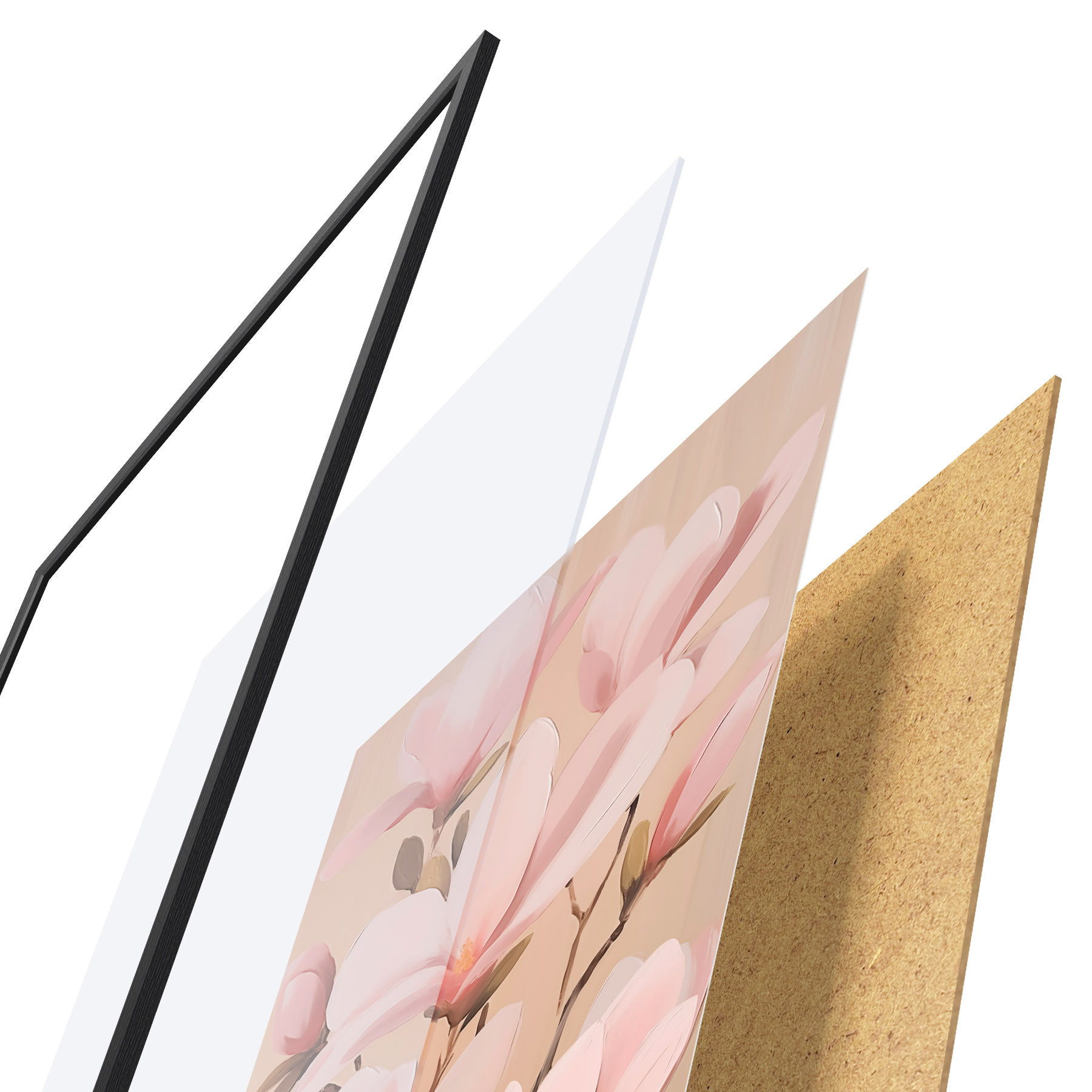 Plakatą sudaro rėmas, pleksiklas, atspausdintas vaizdas ir medžio drožlių plokštės pagrindas. Plakatą galima iš karto pakabinti ant sienos dėl kitoje pusėje esančių laikiklių.