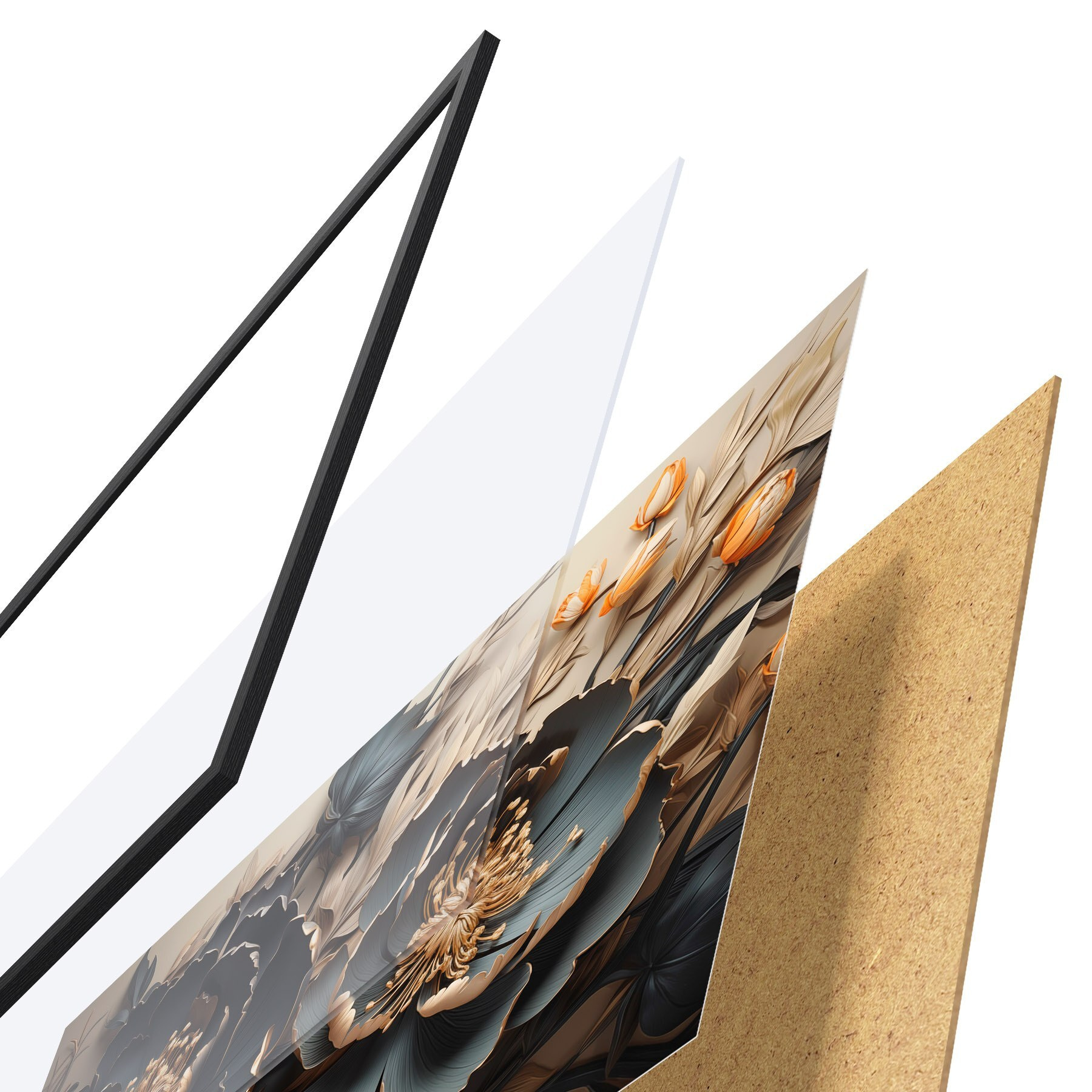 Plakatą sudaro rėmas, pleksiklas, atspausdintas vaizdas ir medžio drožlių plokštės pagrindas. Plakatą galima iš karto pakabinti ant sienos dėl kitoje pusėje esančių laikiklių.
