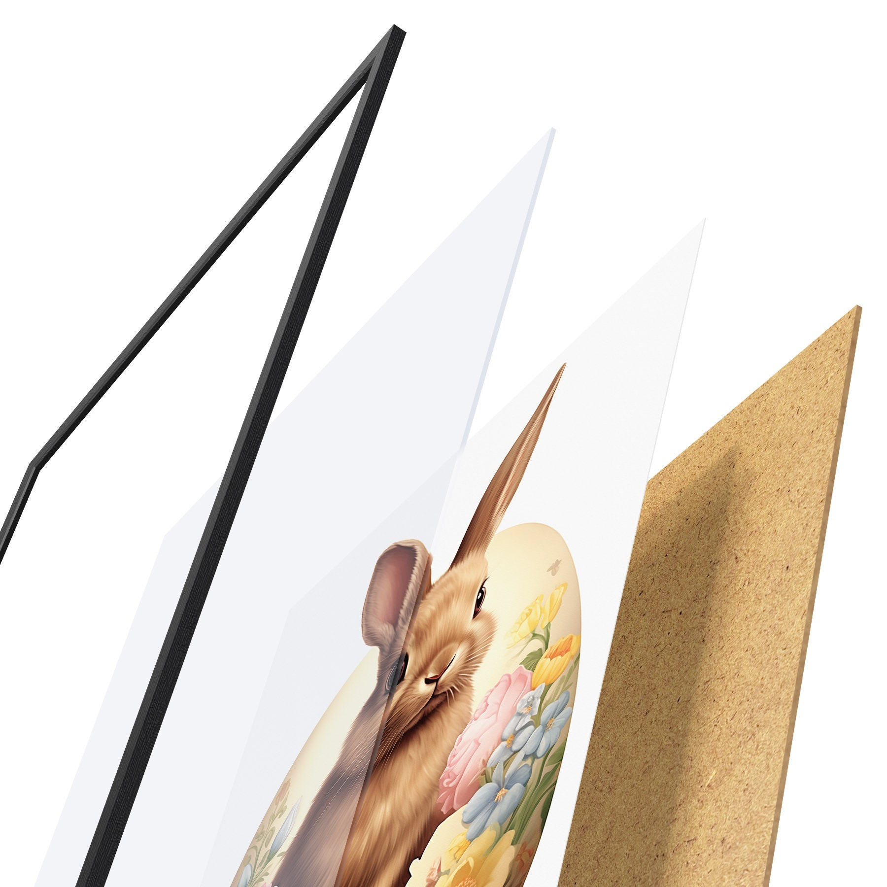 Plakatą sudaro rėmas, pleksiklas, atspausdintas vaizdas ir medžio drožlių plokštės pagrindas. Plakatą galima iš karto pakabinti ant sienos dėl kitoje pusėje esančių laikiklių.