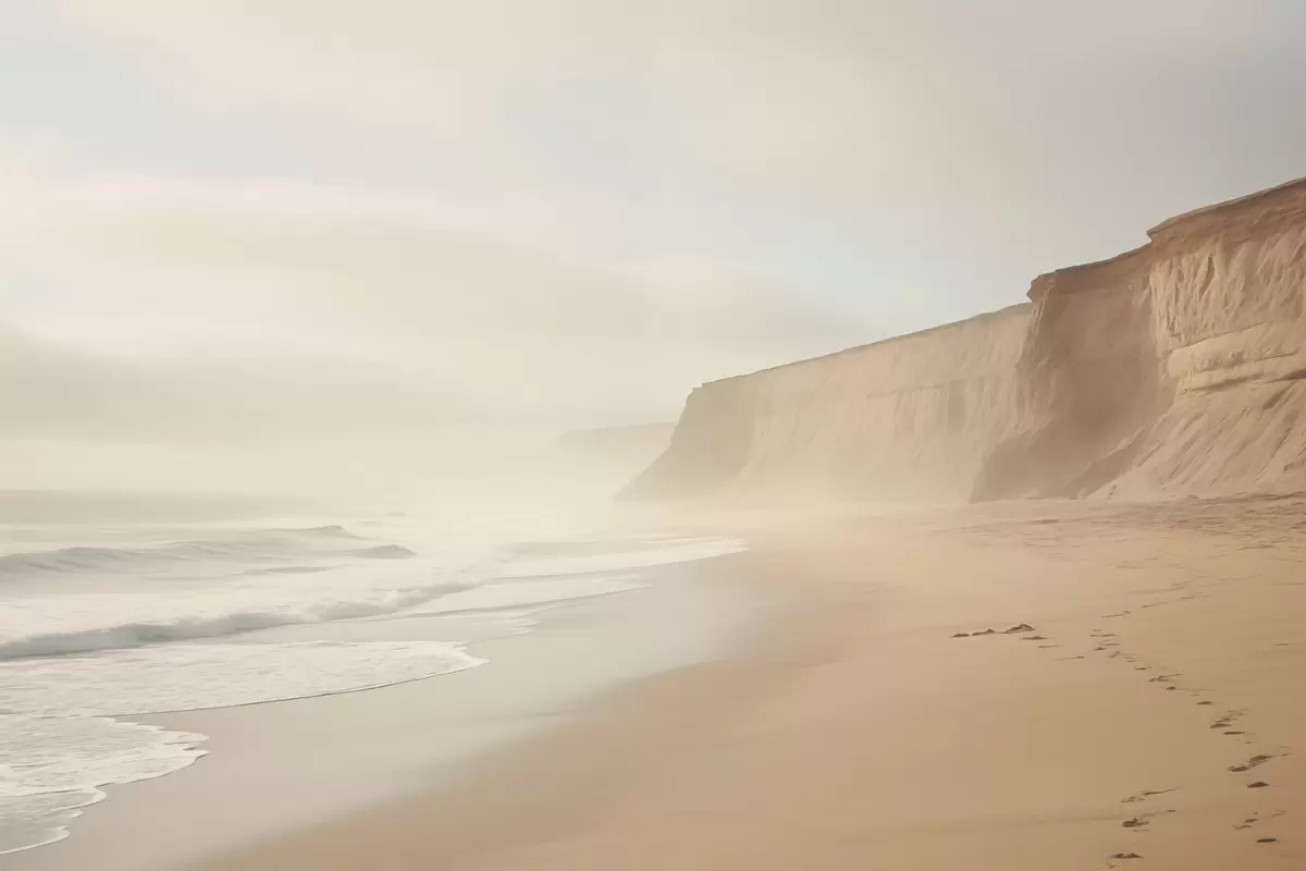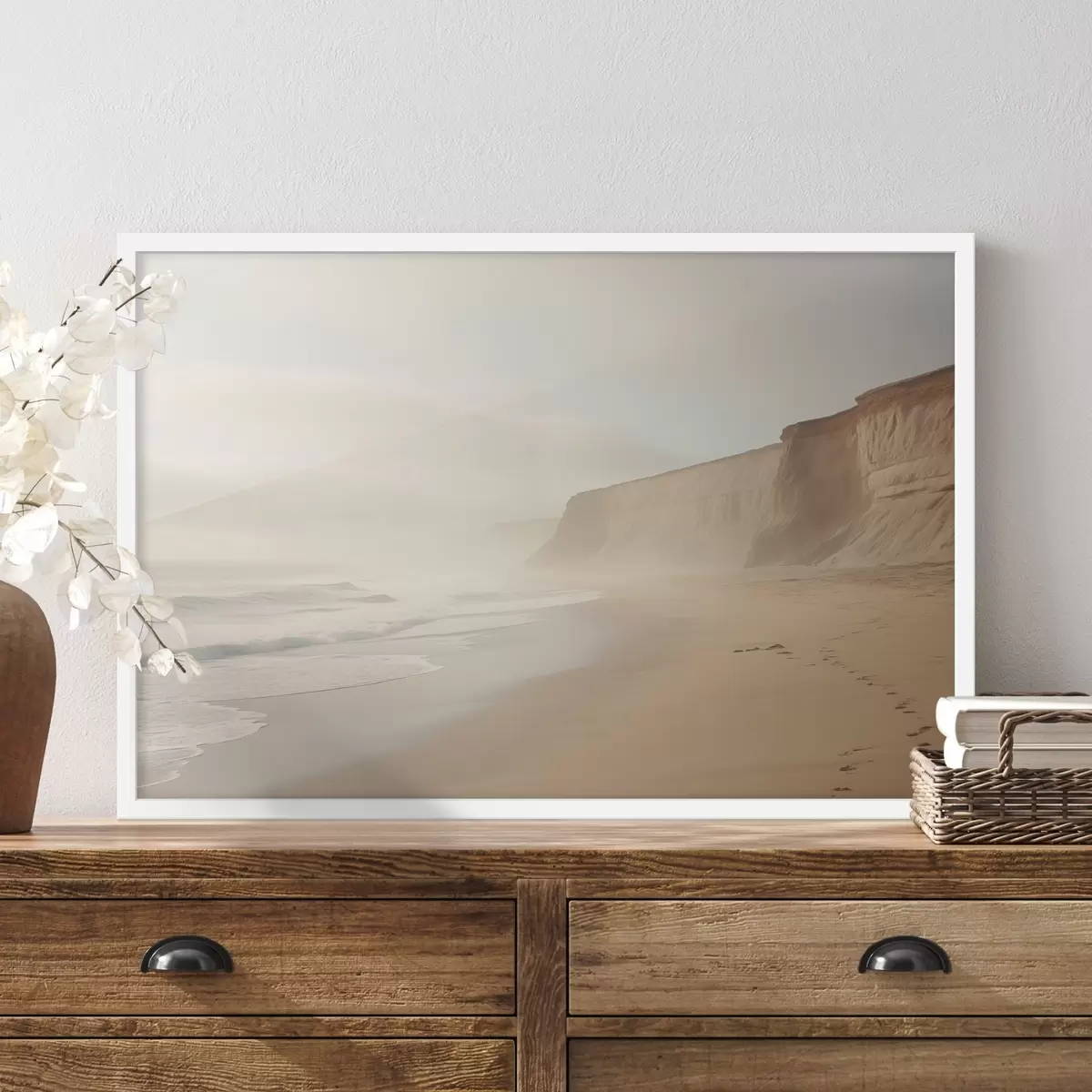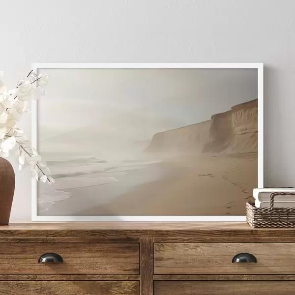 Plakatas Smėlio paplūdimio su uola peizažas giedrą saulėtą dieną f44391
