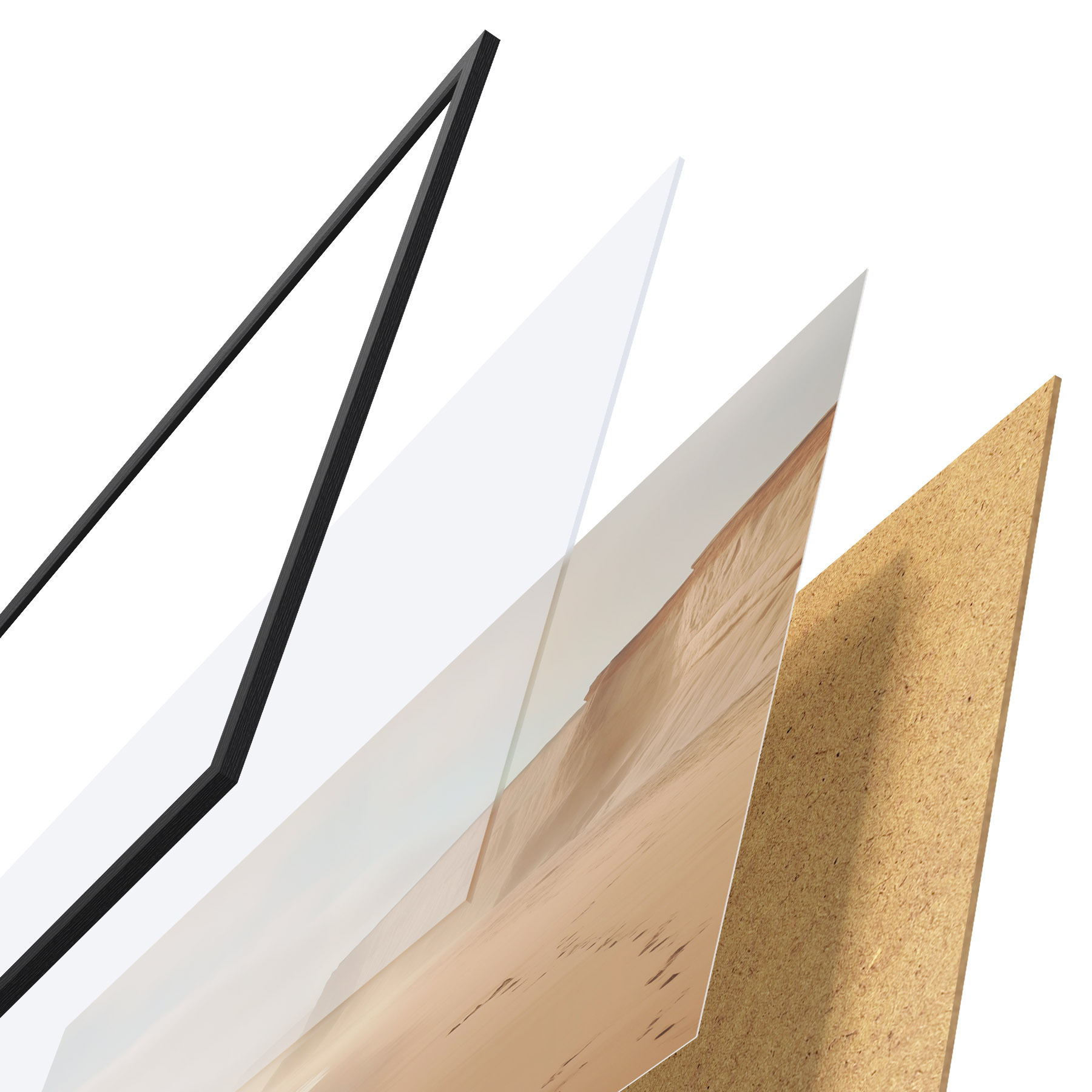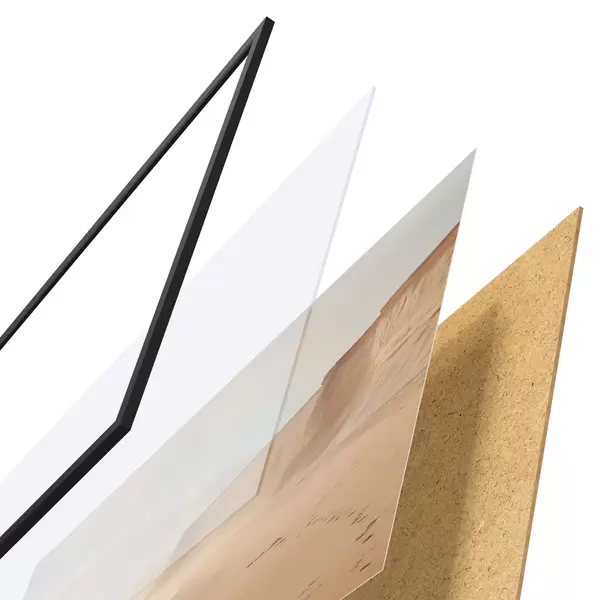 Plakatą sudaro rėmas, pleksiklas, atspausdintas vaizdas ir medžio drožlių plokštės pagrindas. Plakatą galima iš karto pakabinti ant sienos dėl kitoje pusėje esančių laikiklių.
