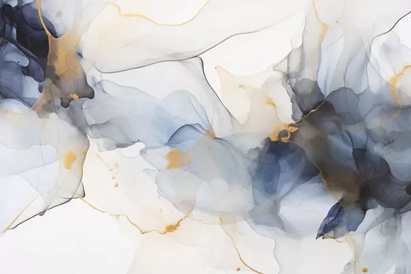 Plakatas Abstraktus paveikslas mėlynu tušu, skystos ir organiškos formos, subtilios tekstūros baltame fone f44397