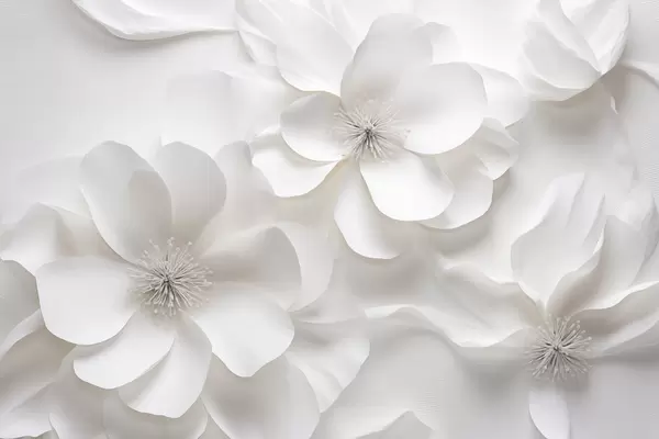 Plakatas Baltos dekoratyvinės gėlės su subtiliais žiedlapiais ir įmantriais kuokeliais f44406
