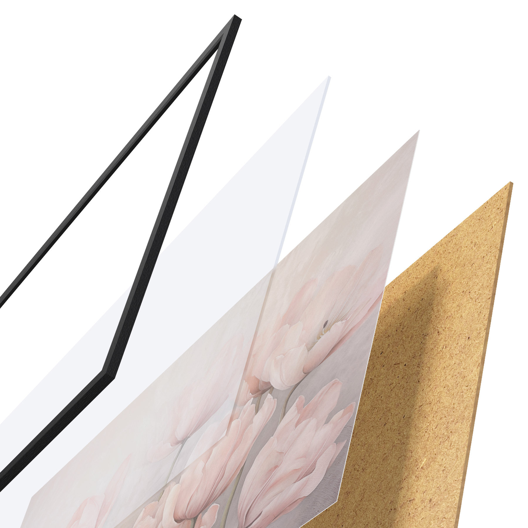Plakatą sudaro rėmas, pleksiklas, atspausdintas vaizdas ir medžio drožlių plokštės pagrindas. Plakatą galima iš karto pakabinti ant sienos dėl kitoje pusėje esančių laikiklių.