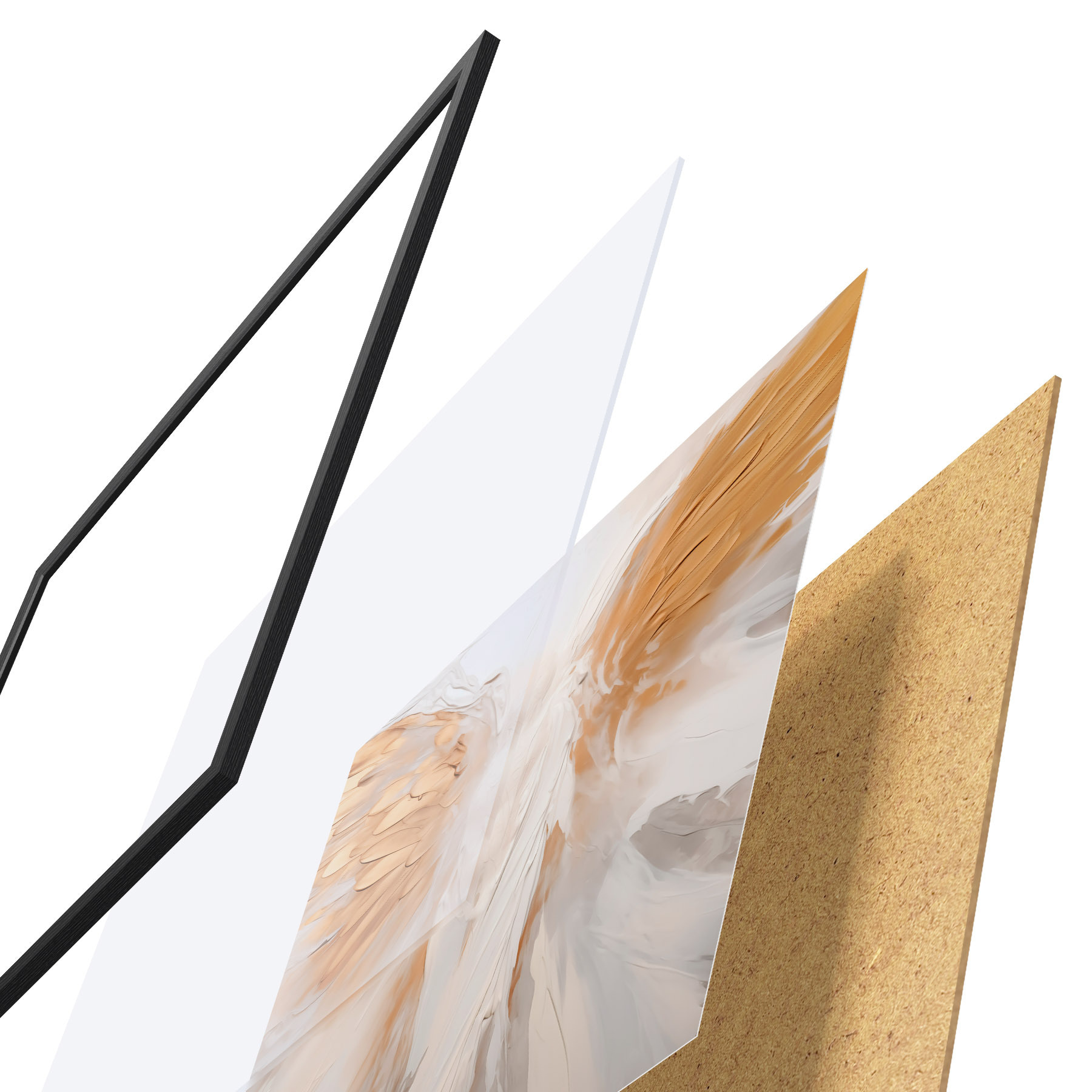 Plakatą sudaro rėmas, pleksiklas, atspausdintas vaizdas ir medžio drožlių plokštės pagrindas. Plakatą galima iš karto pakabinti ant sienos dėl kitoje pusėje esančių laikiklių.