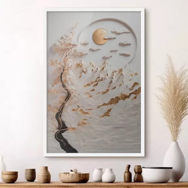 Plakatas Abstraktūs kalnai ir saulė f44428
