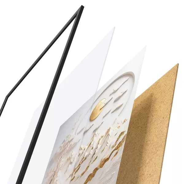 Plakatą sudaro rėmas, pleksiklas, atspausdintas vaizdas ir medžio drožlių plokštės pagrindas. Plakatą galima iš karto pakabinti ant sienos dėl kitoje pusėje esančių laikiklių.