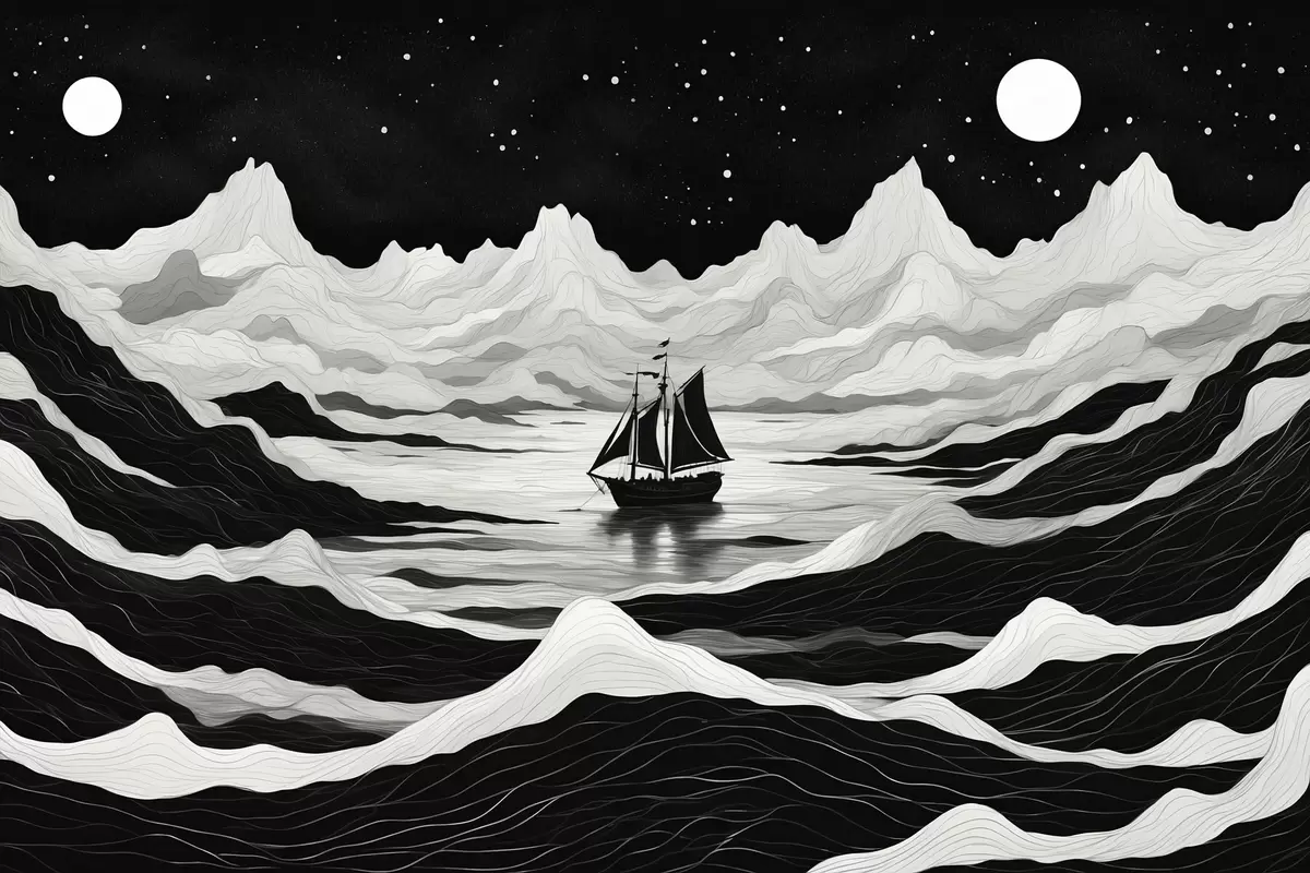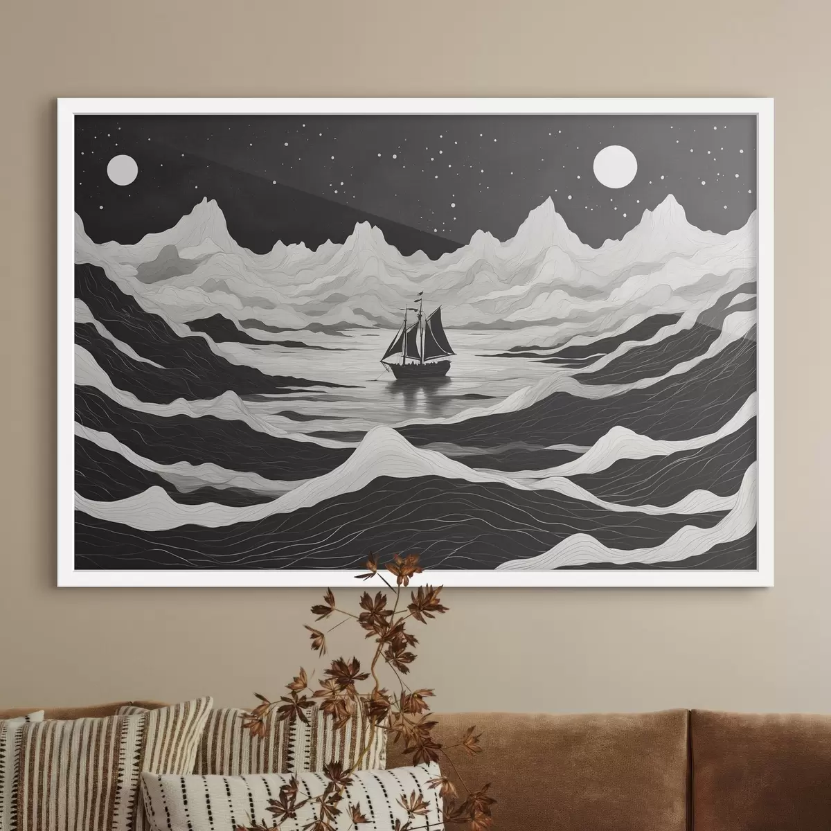 Plakatas Laivas miglotoje nakties jūroje f44437