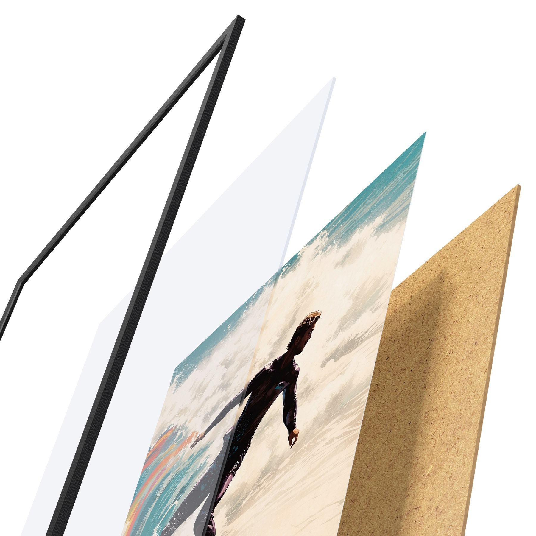 Plakatą sudaro rėmas, pleksiklas, atspausdintas vaizdas ir medžio drožlių plokštės pagrindas. Plakatą galima iš karto pakabinti ant sienos dėl kitoje pusėje esančių laikiklių.