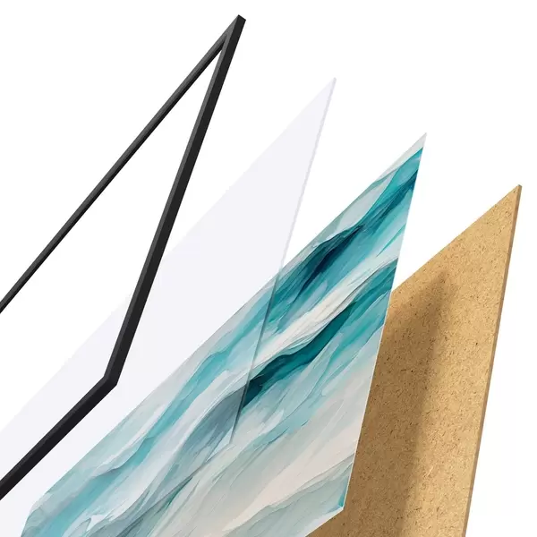 Plakatą sudaro rėmas, pleksiklas, atspausdintas vaizdas ir medžio drožlių plokštės pagrindas. Plakatą galima iš karto pakabinti ant sienos dėl kitoje pusėje esančių laikiklių.