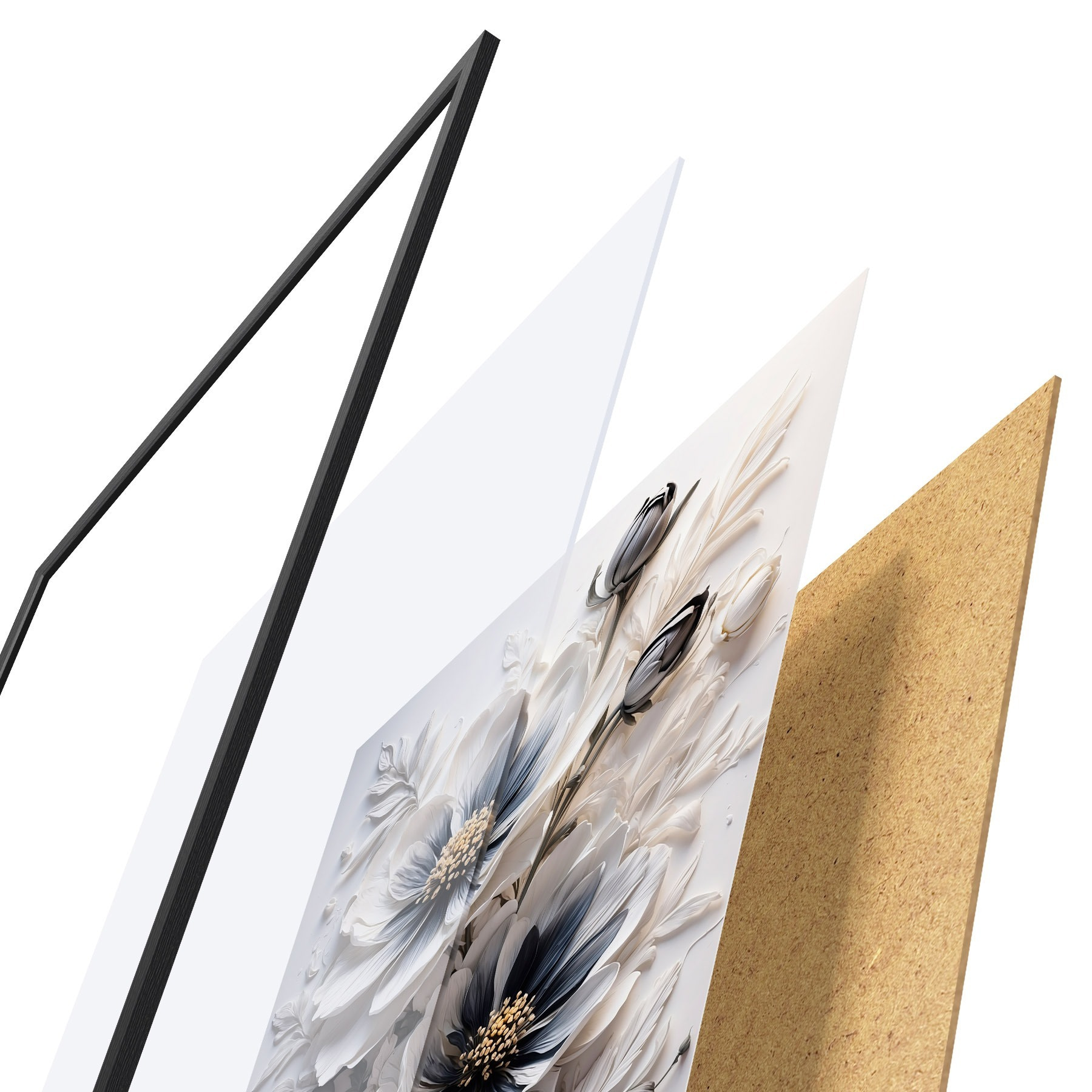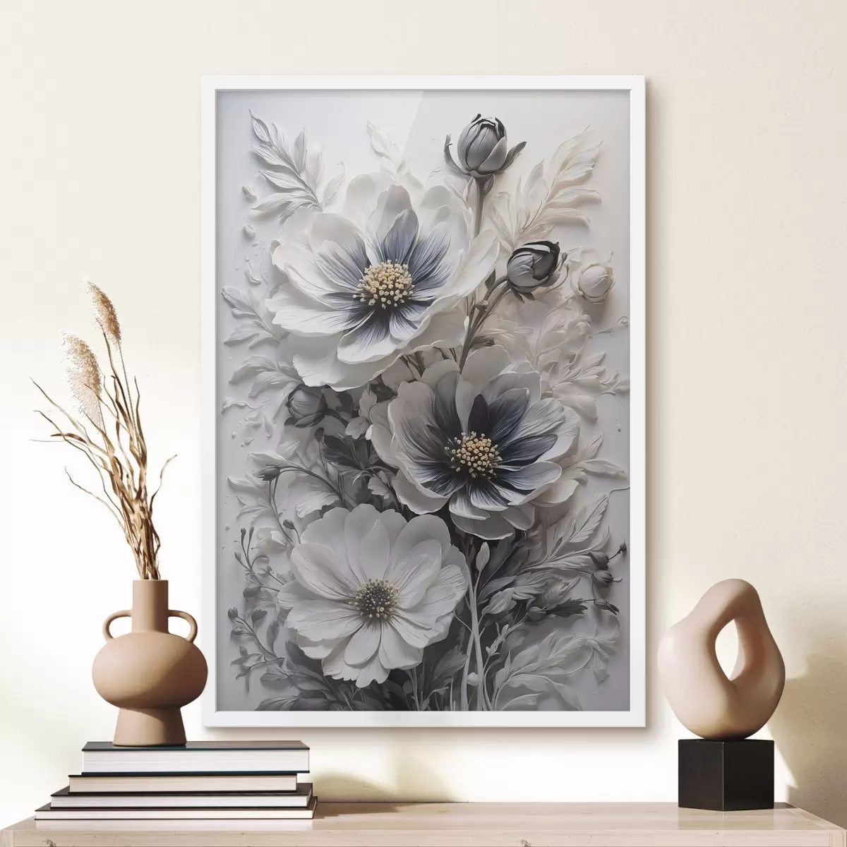 Plakatas Juodos ir baltos gėlės baltame fone Ne f44446