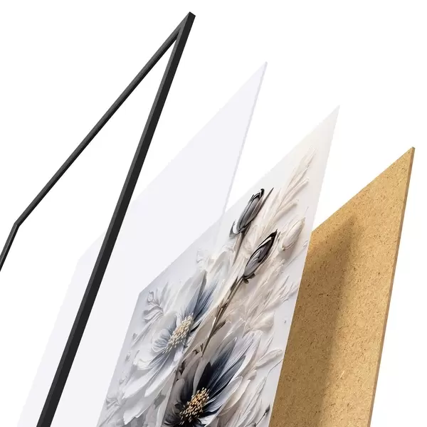 Plakatą sudaro rėmas, pleksiklas, atspausdintas vaizdas ir medžio drožlių plokštės pagrindas. Plakatą galima iš karto pakabinti ant sienos dėl kitoje pusėje esančių laikiklių.