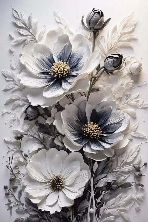 Plakatas Juodos ir baltos gėlės baltame fone f44446