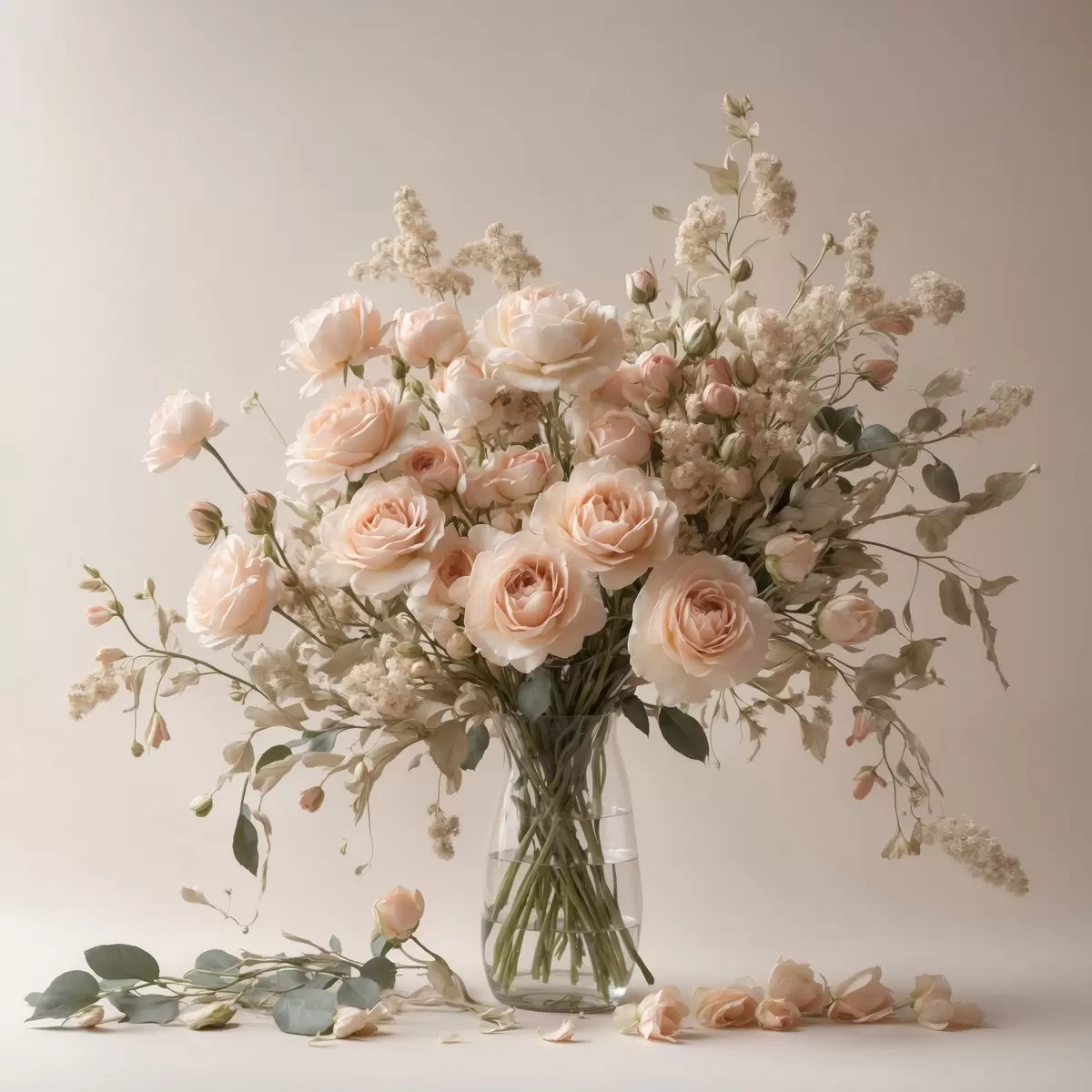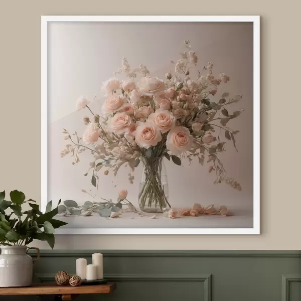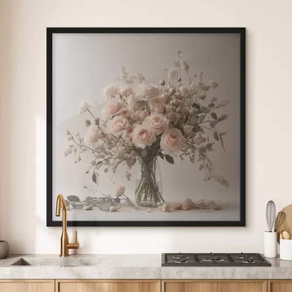 Plakatas Baltos rožės skaidrioje vazoje f44451