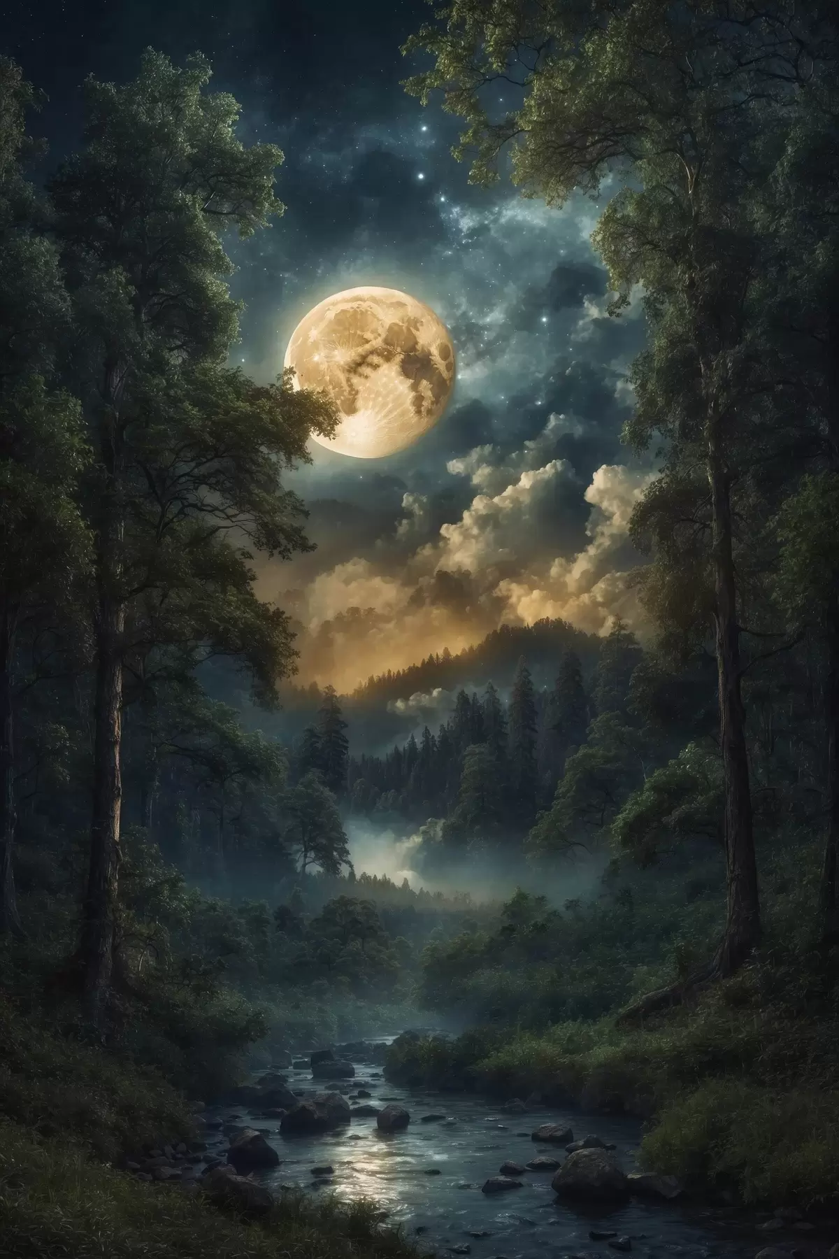 Plakatas Mėnulio pilnatis miške Ne f44454