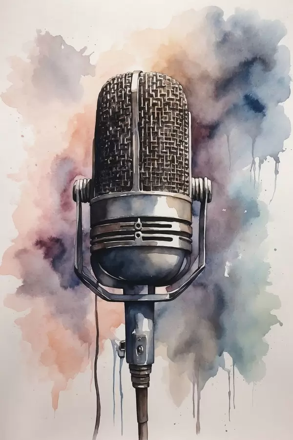 Plakatas Mikrofonas akvarelės fone f44463