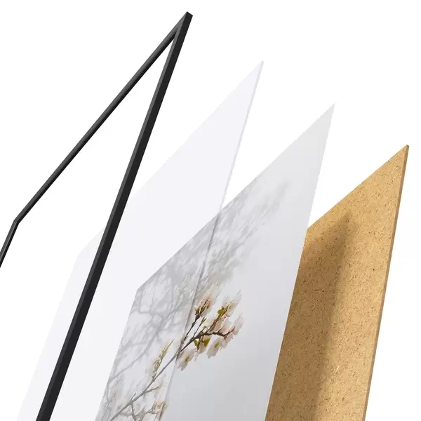 Plakatą sudaro rėmas, pleksiklas, atspausdintas vaizdas ir medžio drožlių plokštės pagrindas. Plakatą galima iš karto pakabinti ant sienos dėl kitoje pusėje esančių laikiklių.