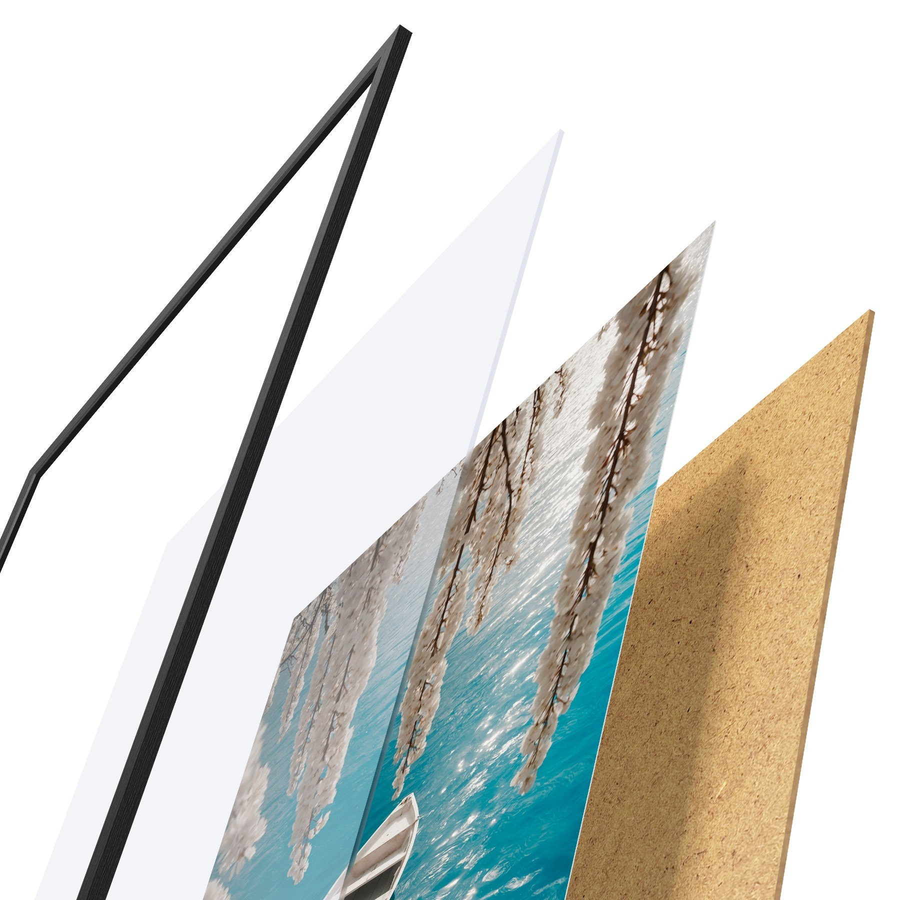 Plakatą sudaro rėmas, pleksiklas, atspausdintas vaizdas ir medžio drožlių plokštės pagrindas. Plakatą galima iš karto pakabinti ant sienos dėl kitoje pusėje esančių laikiklių.