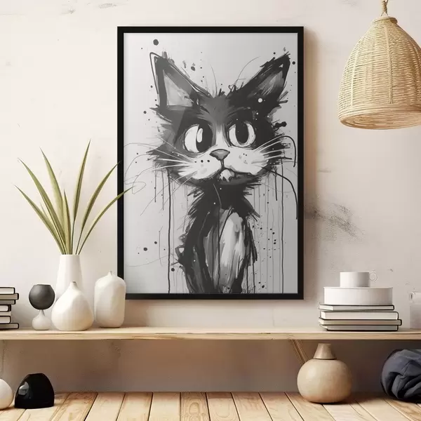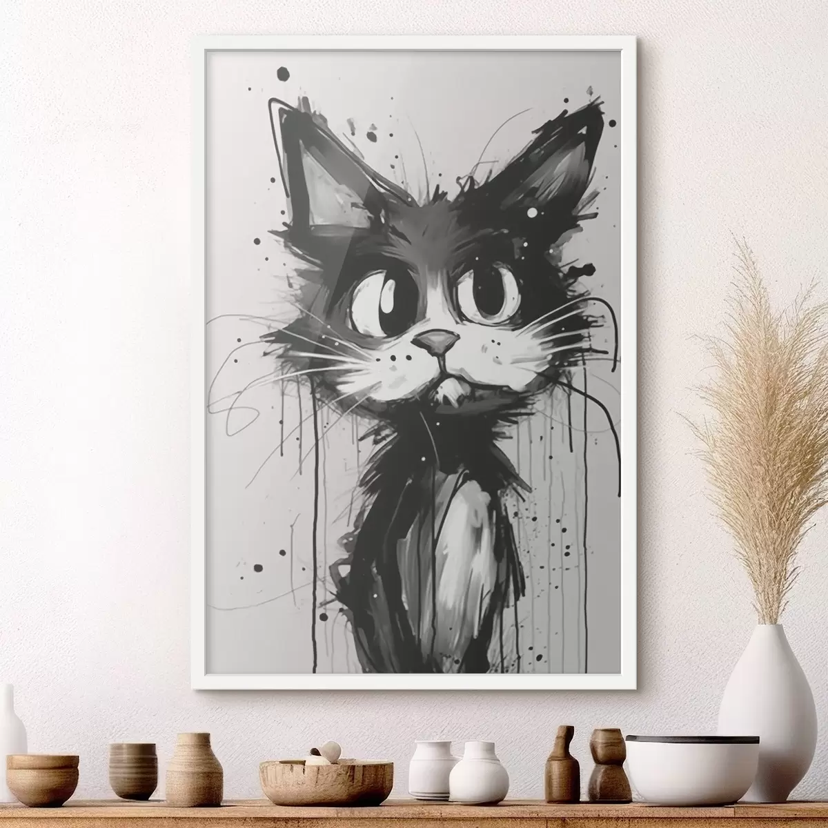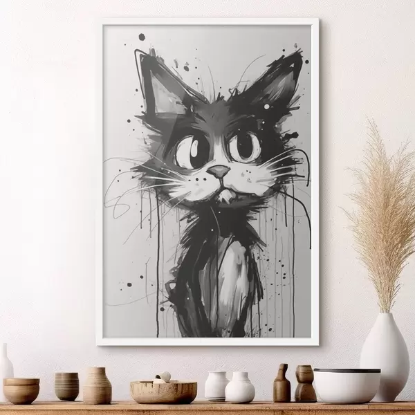 Plakatas Katė eskizo stiliumi su dažų purslais f44483