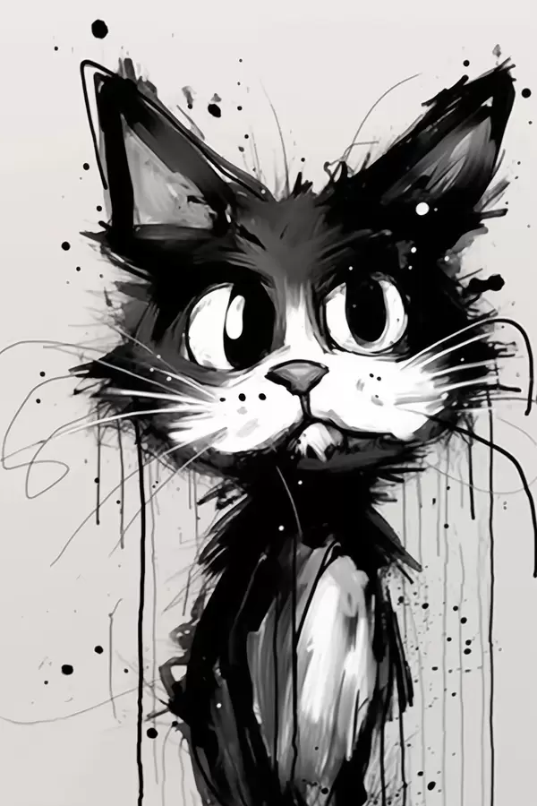 Plakatas Katė eskizo stiliumi su dažų purslais f44483