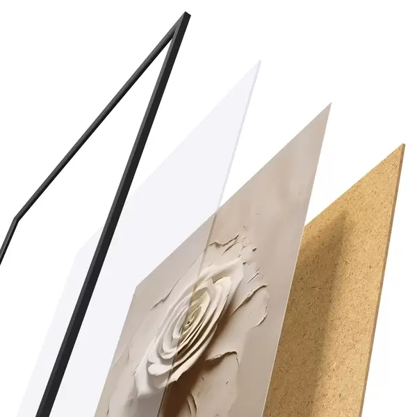 Plakatą sudaro rėmas, pleksiklas, atspausdintas vaizdas ir medžio drožlių plokštės pagrindas. Plakatą galima iš karto pakabinti ant sienos dėl kitoje pusėje esančių laikiklių.